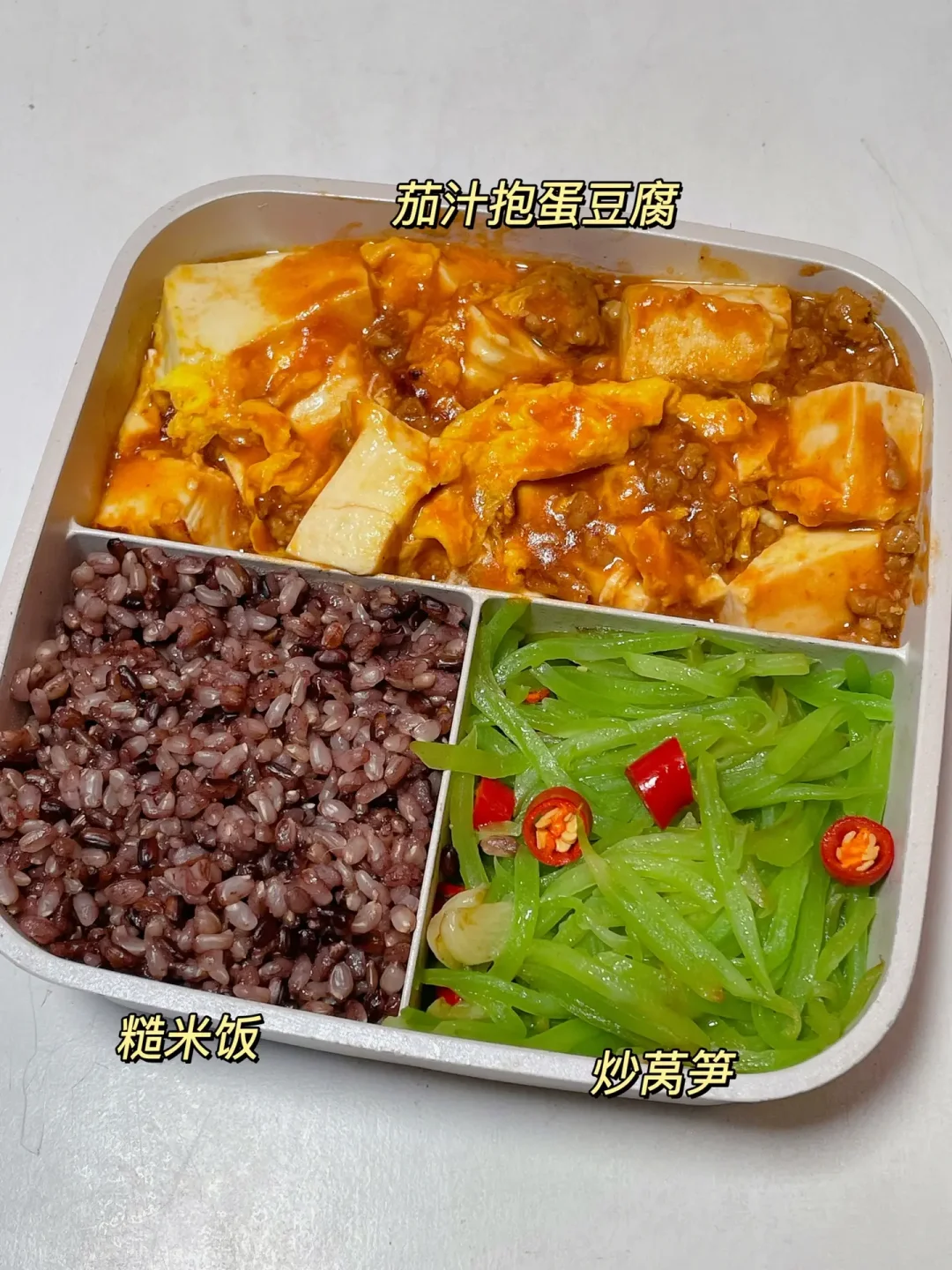 📍糙米饭+茄汁抱蛋豆腐+炒莴笋丝