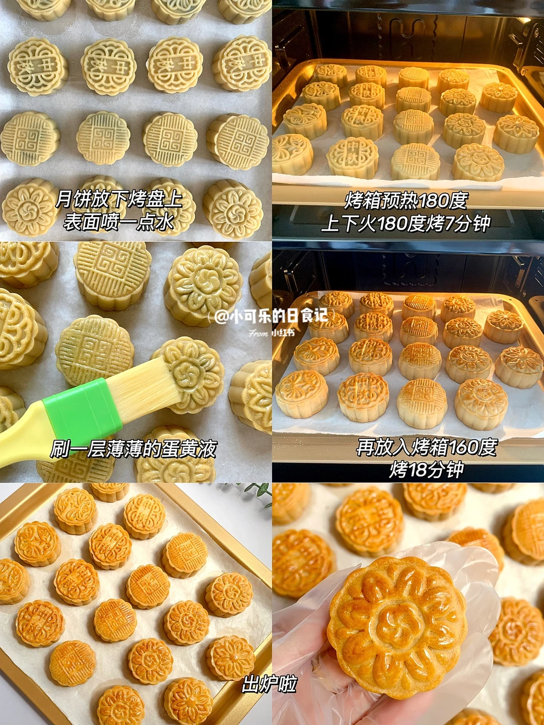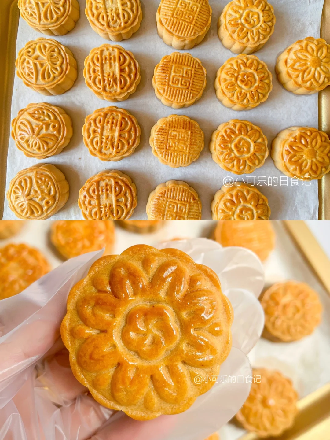 刚烤好的月饼会有点软,慢慢转移到晾网上晾凉后密封保存,回油后会更好吃哦
