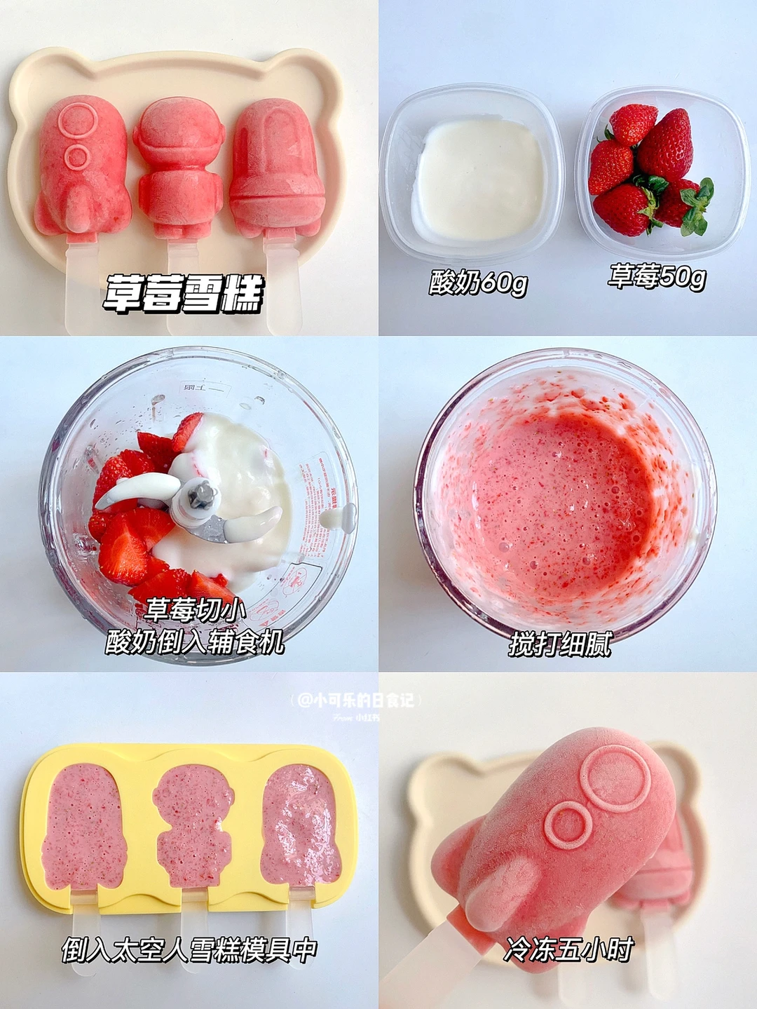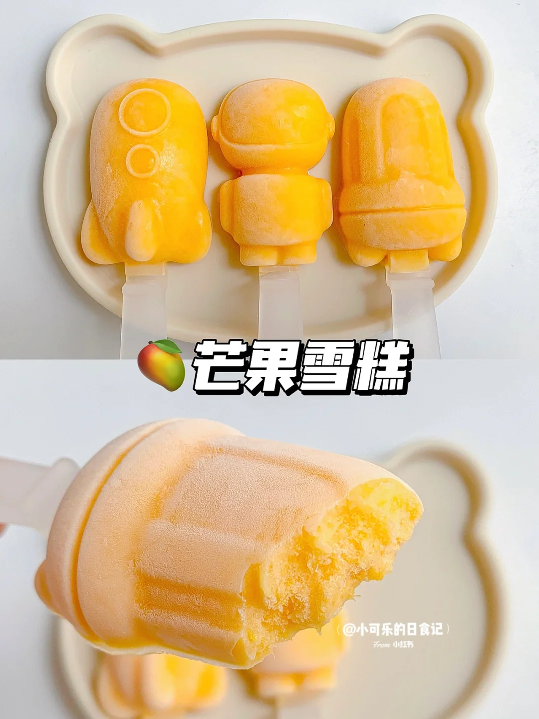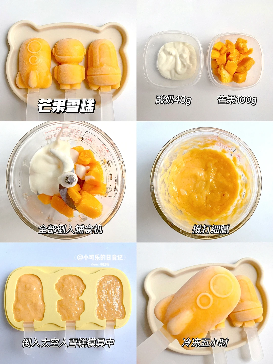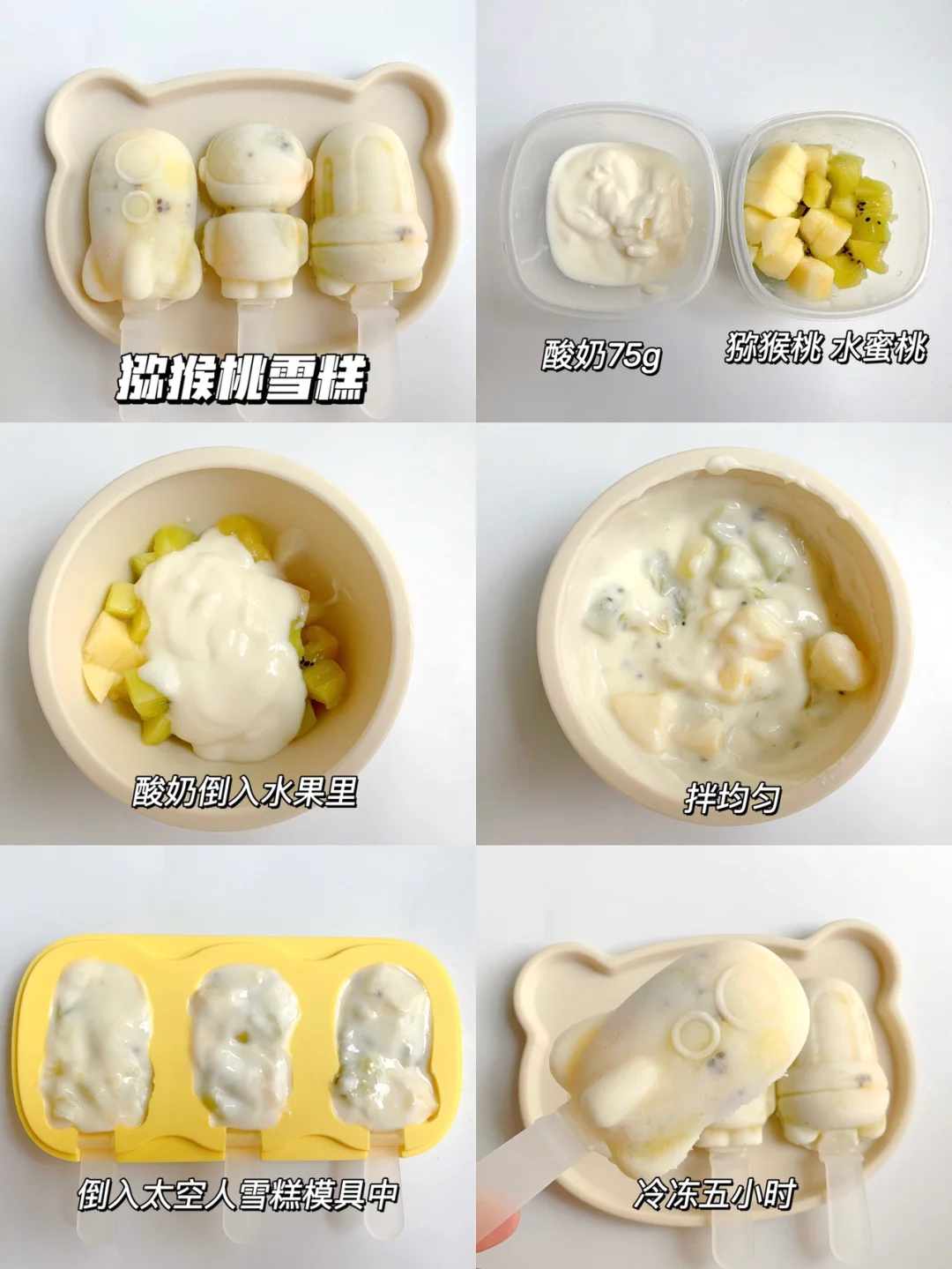👩🍳做法:水果切丁或者放入辅食机打成泥,倒入雪糕模具中,盖上盖子冷冻5小时,拿出来脱模即可