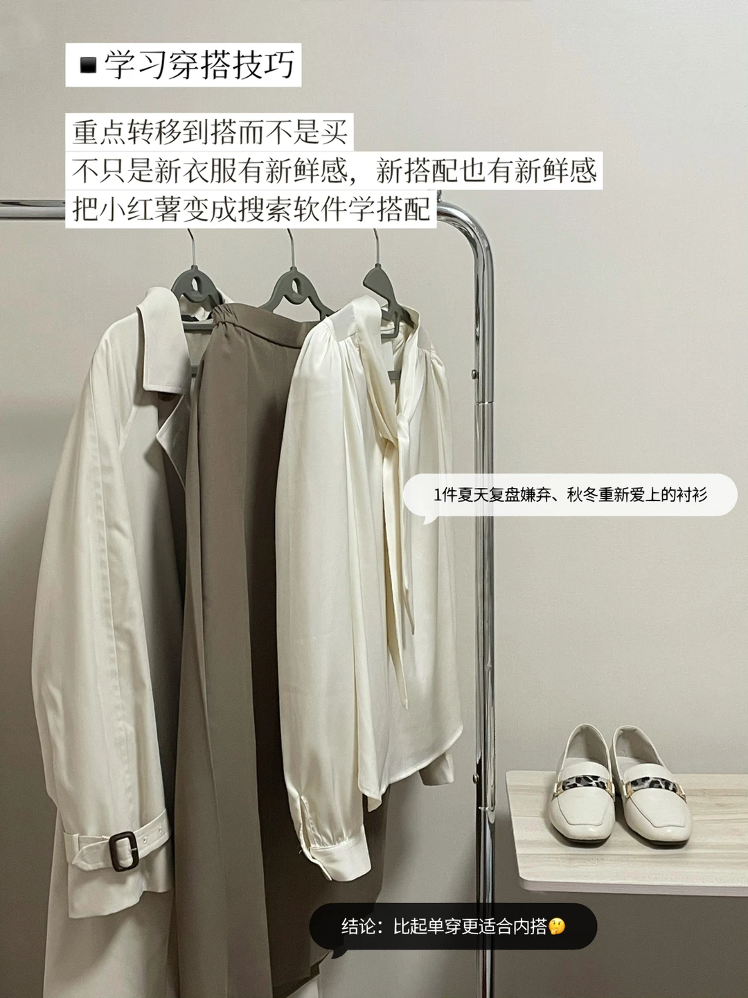 重点转移到搭而不是买。不只是新衣服有新鲜感,新搭配也有新鲜感。把小红薯变成搜索软件学搭配