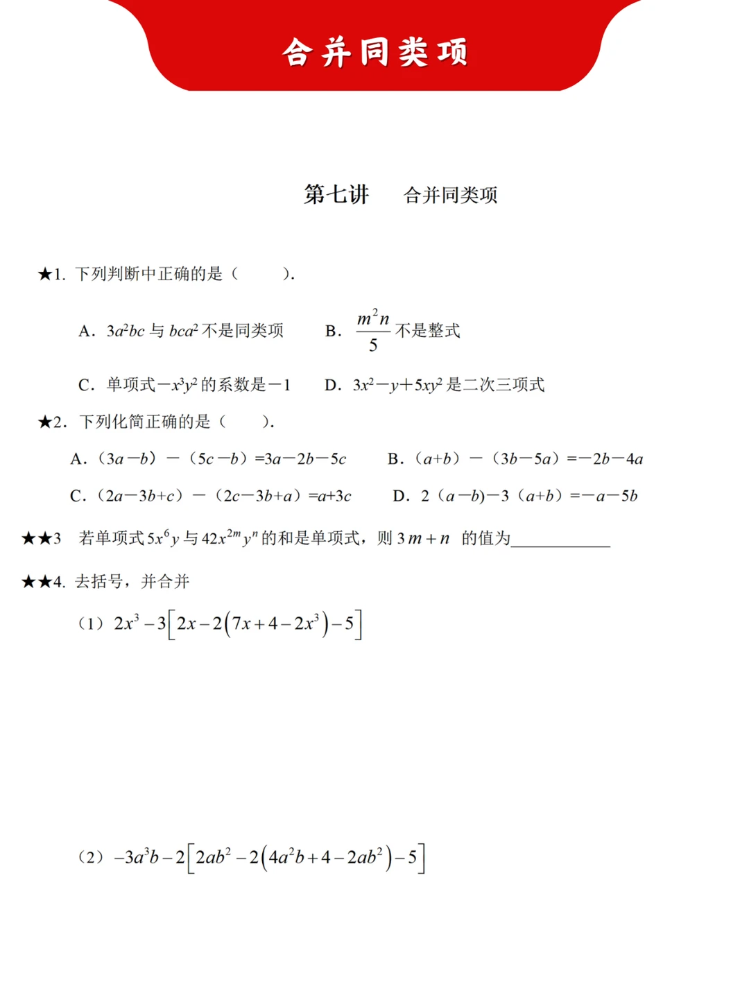 🌈暑假学习:小升初数学衔接讲解练习 1️⃣ 有理数的初步认识 2️⃣ 绝对值与有理数的加减法 3️⃣ 有理数运算之乘除法 4️⃣ 有理数运算之乘方 5️⃣ 有理数的混合运算及科学记数法 6️⃣ 整式——单项式与多项式 7️⃣ 整式运算——合并同类项 8️⃣ 整式运算化简求值 9️⃣ 一元一次方程的认识与解法