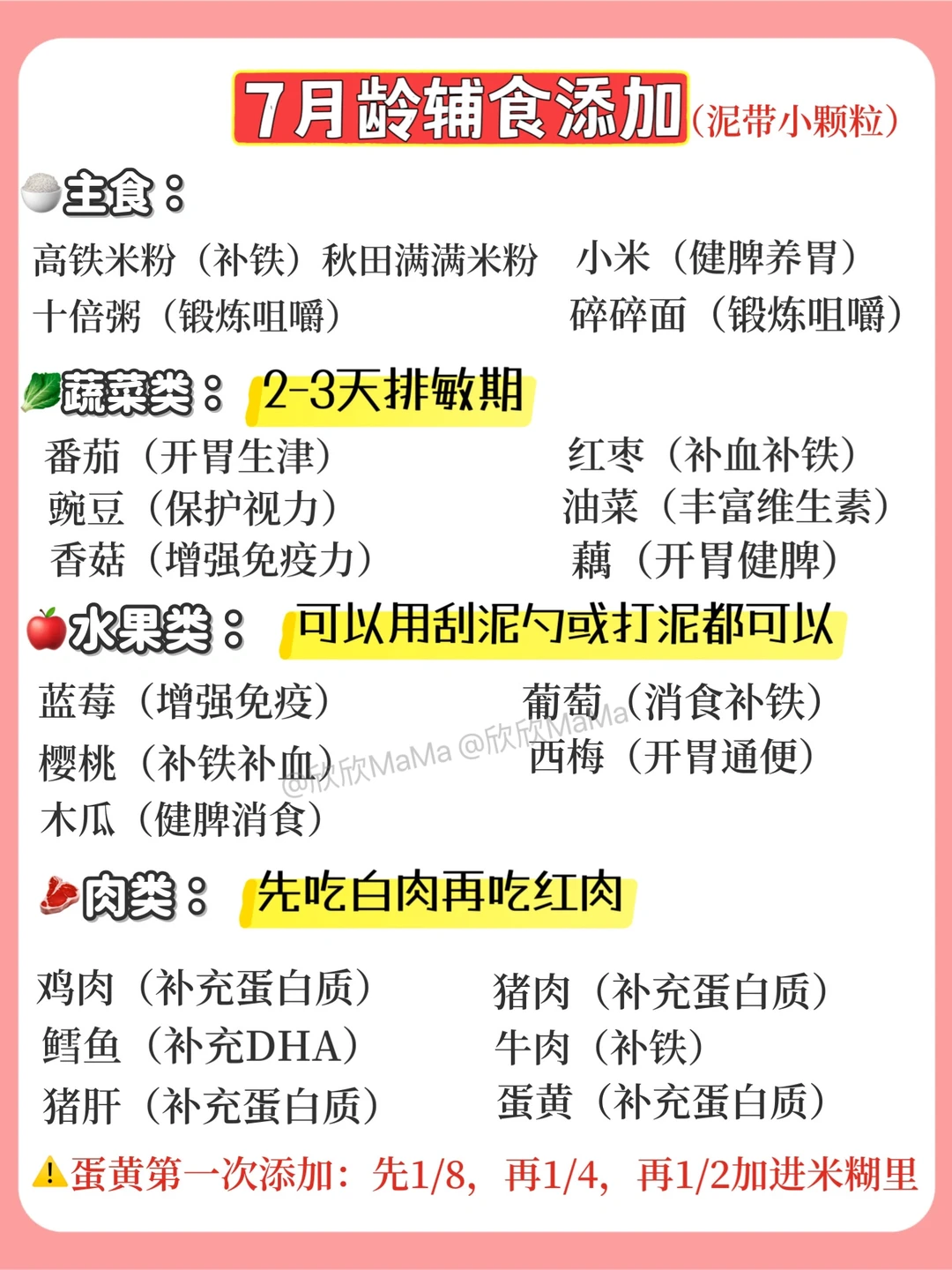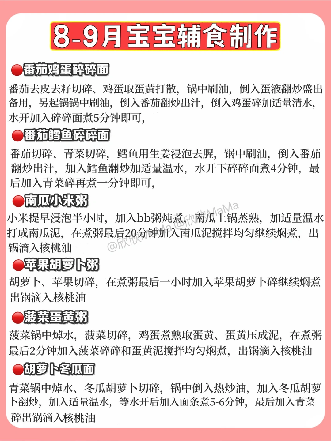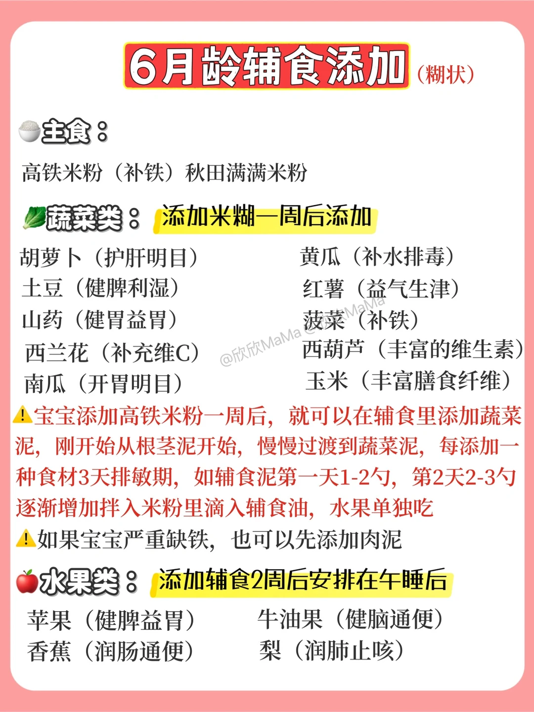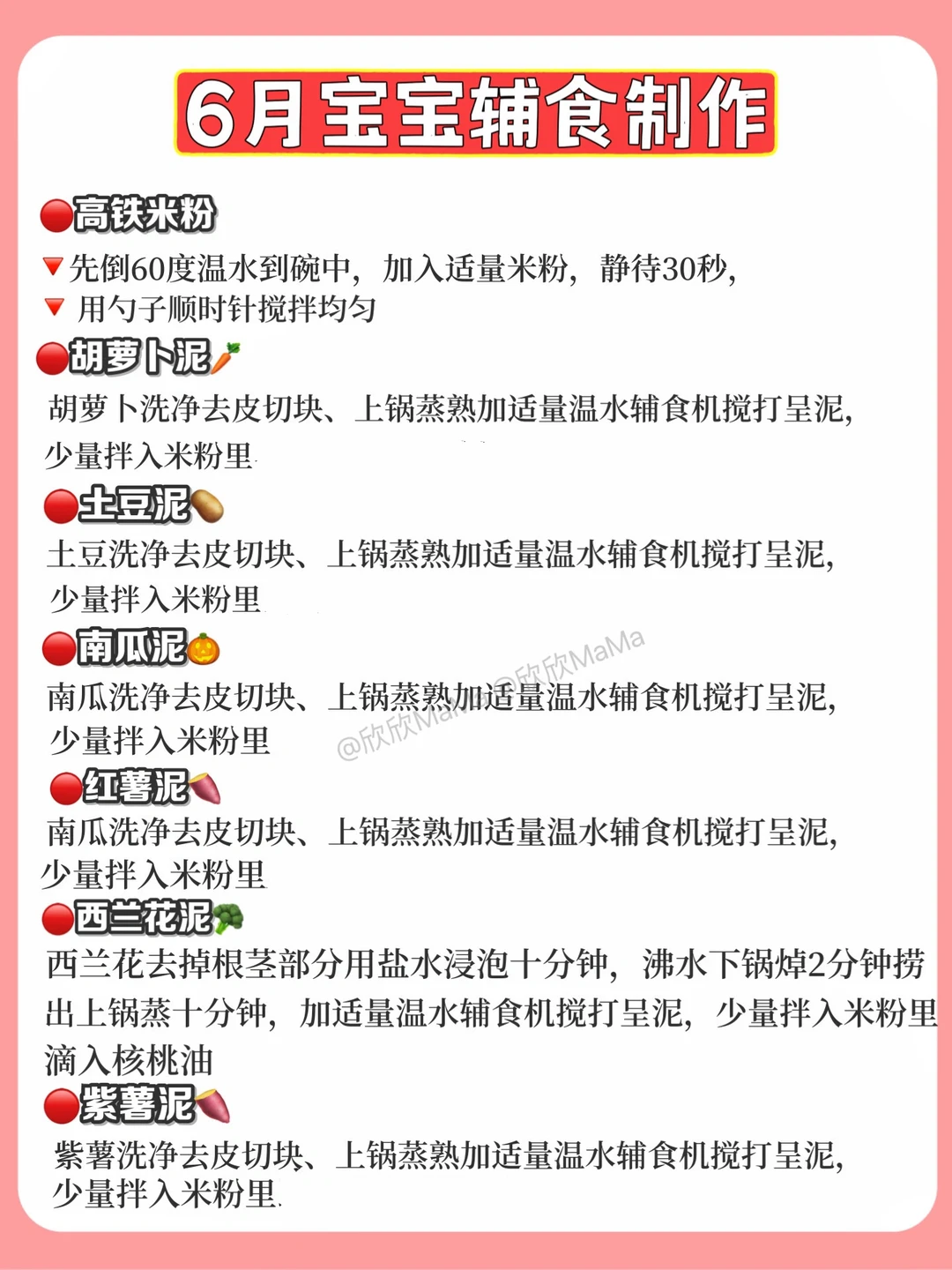 ⚠️每添加一种食材2-3天排敏期,如辅食泥第一天1-2勺,第2天2-3勺逐渐增加拌入米粉里滴入核桃油搅拌食用,水果泥单独吃!