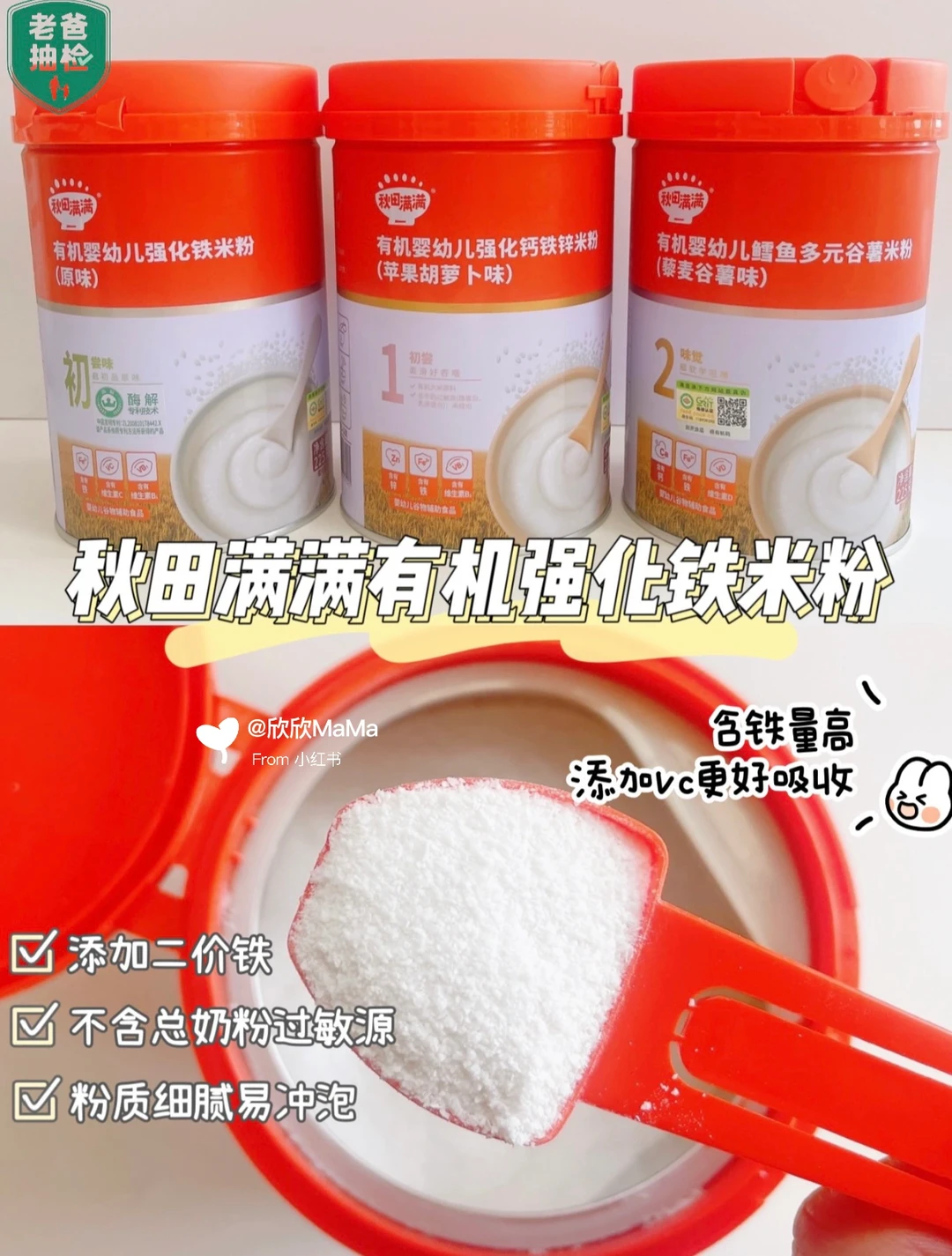 🌟我用的米粉是秋田满满有机婴幼儿强化铁米粉,铁含量很高,能够满足宝宝日常铁含量的需求,而且配料表很干净,不含总生奶过敏原!粉质细腻,很好冲泡,很适合作为宝宝第一口米粉!