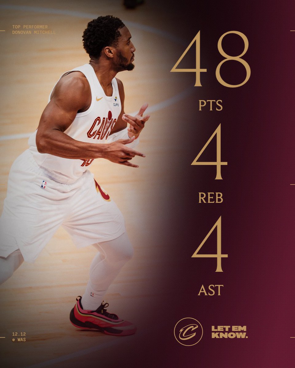 骑士官方更新动态,晒出米切尔今日的数据海报: