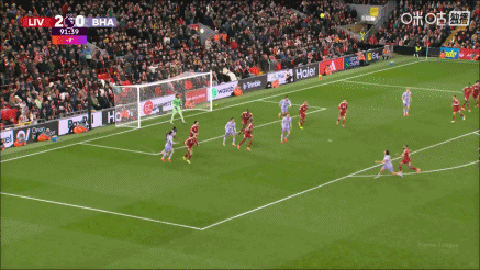 伤停补时3分钟。全场比赛结束,利物浦2-0布莱顿。