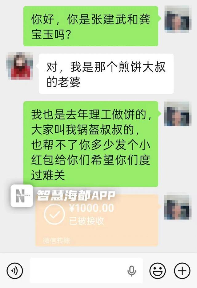 此外,记者了解到,锅盔叔叔胡先生已向张建武捐赠1000元爱心善款,用于支持治疗。此前,锅盔叔叔在接受海都记者采访时说过:“因为我曾经淋过雨,是爱心人士给我撑起了伞,我希望把这把伞传递下去,撑起千千万万的家庭。”