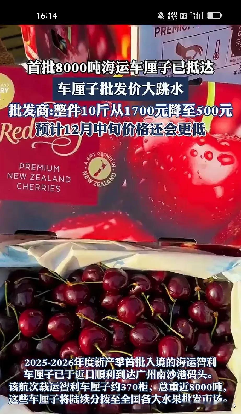 车厘子3J的价格 跌到地板价 还会跌吧? 跌一跌再吃, 老百姓需要的是低价优质的产品 漂洋过海的运来,除去运输费, 中间商赚差价的时代 一去不复返 譬如榴莲,譬如玫瑰葡萄 但一分钱一分货,高质量的应该拉开差价 让小商小贩都有钱赚 车厘子 车厘子进口量 金车厘子价格 车厘子 价格 车厘子价格