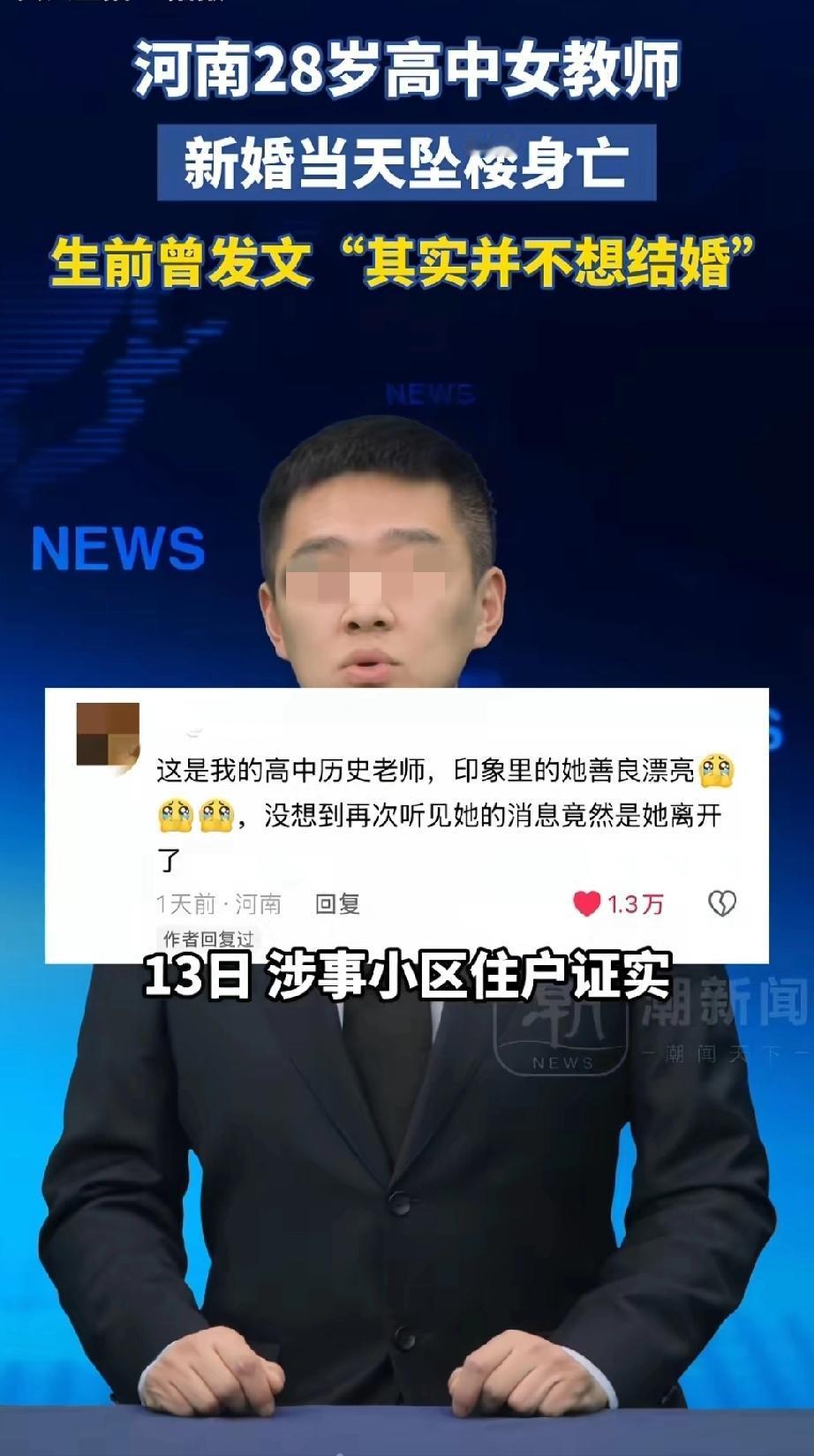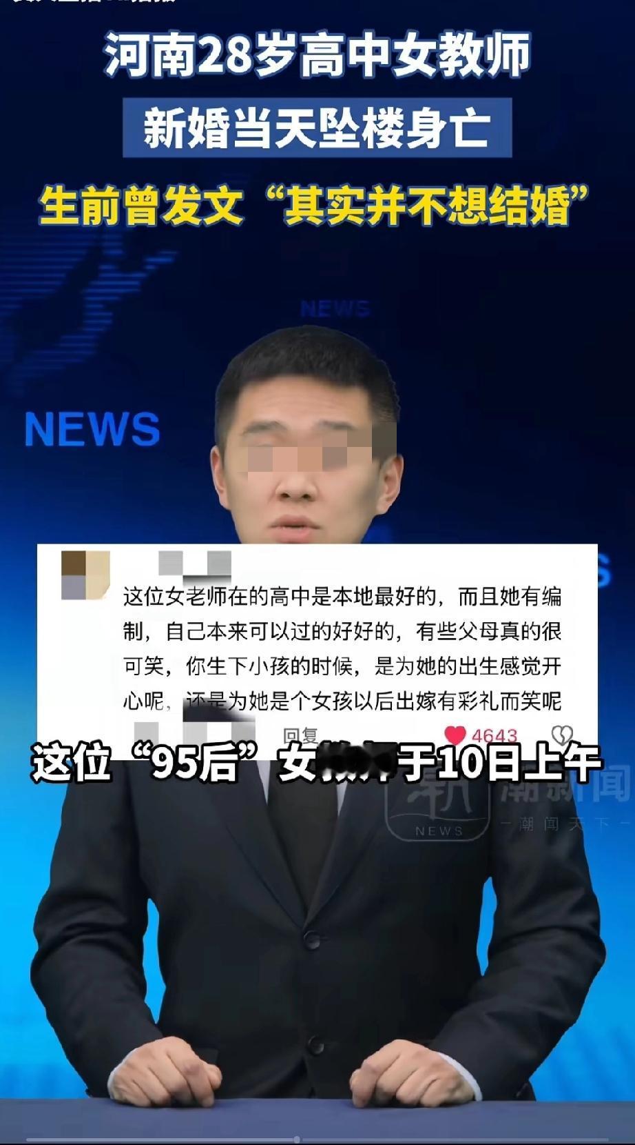 28岁女高中老师新婚当天跳楼身亡,生前发文内容洋洋洒洒,写满了: 我不想结婚,更