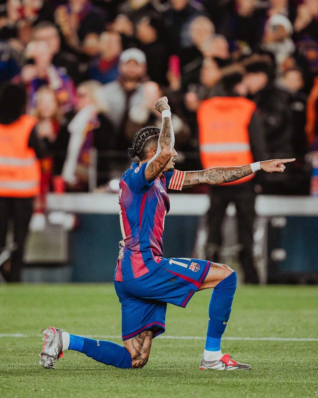 巴萨2比0奥萨苏纳 🥹梅开二度取得关键三分后,寿星拉菲尼亚更新社媒只说了四个字