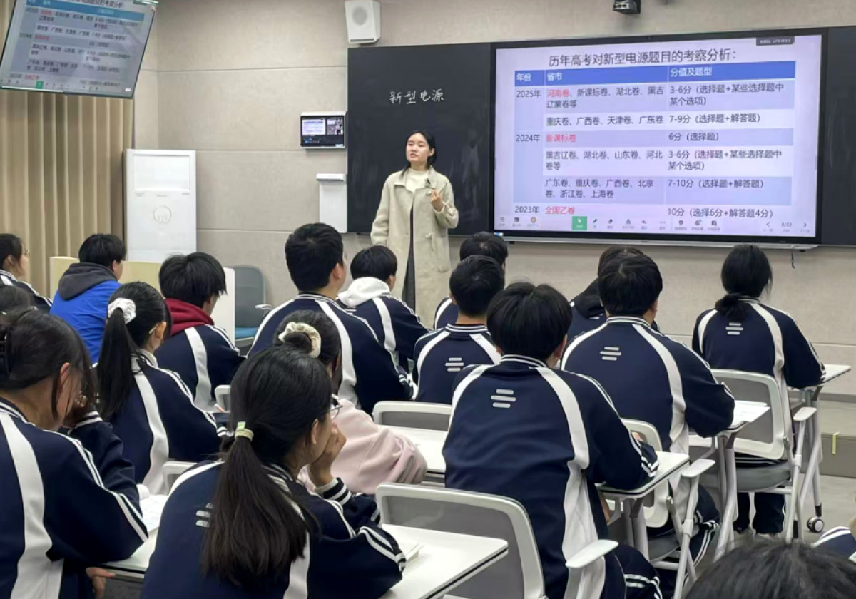 课堂上,青年教师化身教学创新实践者,将AI技术巧妙融入教学设计,为课堂注入全新活力。他们借助AI分析学情,精准定位学生知识难点;用智能互动工具高效收集课堂反馈;通过虚拟仿真让抽象知识变得直观易懂。更别出心裁地引入“牛顿”“秦始皇”AI智能体协助授课,瞬间点燃学生学习热情;基于视频脚本生成的AI视频,又让学生直观体验到文本向可视化画面的转化,加深了对知识内涵的理解。再搭配新颖的板书设计,对高考考点的精准把握,让课堂取得了良好的教学效果。青年教师大胆尝试、构思新颖,既打破传统教学边界,又紧扣教学核心,用技术助力教学提质和考点突破,展现出扎实素养,赢得听课人员一致好评。