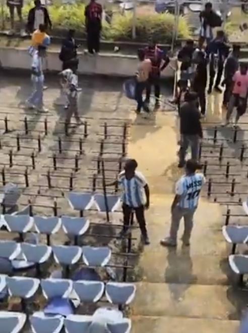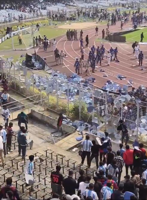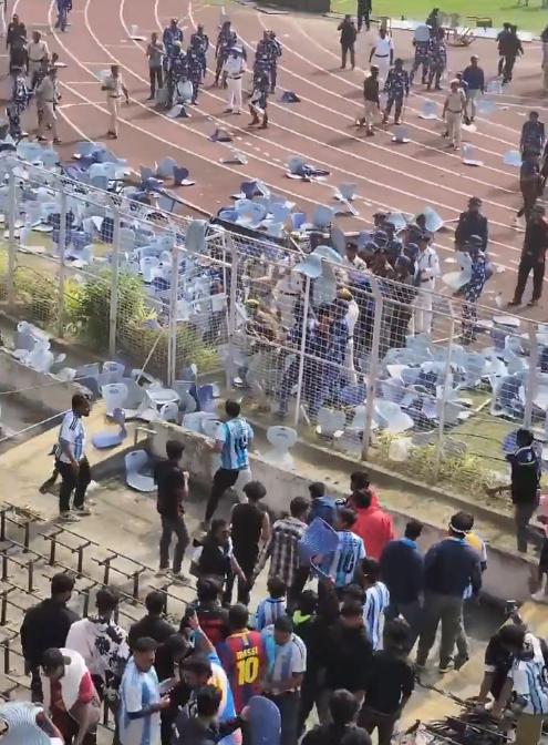 印度:数千名球迷花费高达133美元,只为在印度加尔各答盐湖体育场一睹梅西的风采。然而,梅西抵达仅20分钟后便离场,令球迷们失望不已。现场一片混乱,球迷们将撕碎的座椅、瓶子和其他杂物扔进场内,场面一度失控。球迷们愤怒地表示,由于梅西被安保人员、政客和名人簇拥着,视线受阻,他们根本无法看清他。 印度加尔各答盐湖体育场发生的混乱场面。由于梅西在其“GOAT巡回赛”中仅短暂亮相20分钟,球迷们感到不满,并采取了暴力行为,包括向场内投掷撕碎的座椅和瓶子。球迷们花费高达133美元购买门票,原本期待能与梅西进行更长时间、更深入的互动,但结果却失望而归。梅西身边围绕着保安、政客和名人,许多观众几乎看不到他。 此次事件凸显了球迷期望与活动实际执行情况之间的巨大落差,梅西的亮相也因暴力升级而被迫中断。该事件发生在旨在庆祝梅西传奇生涯的巡回演出期间,却演变成了一场公关噩梦,导致西孟加拉邦首席部长玛玛塔·班纳吉公开道歉,并启动了对此次活动管理不善的调查。舆论反弹如此强烈,以至于活动组织者被拘留,主办方承诺为球迷退款。