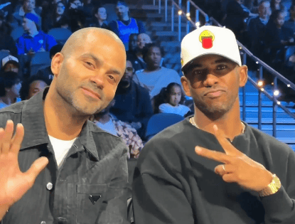 赛后NBA官方在社交媒体上晒出了马刺名宿托尼-帕克与前快船球员克里斯-保罗的合影。