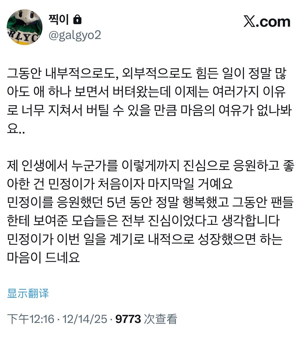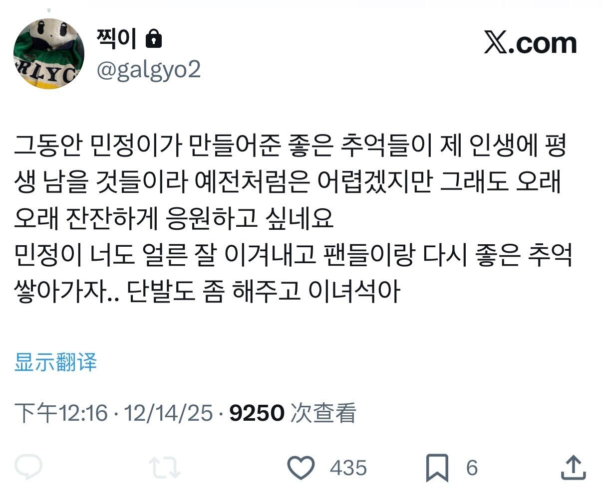 金玟庭外网粉丝发文
