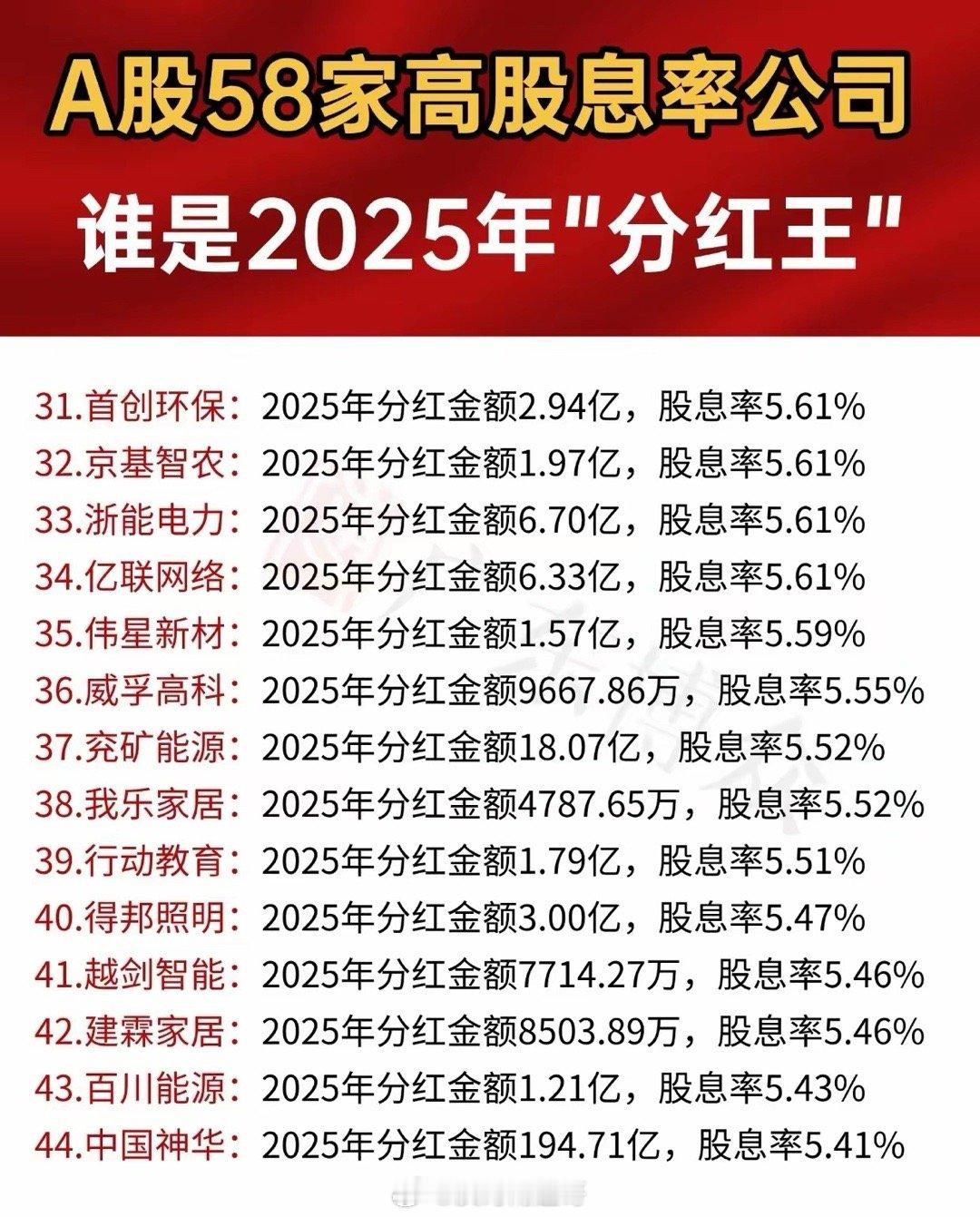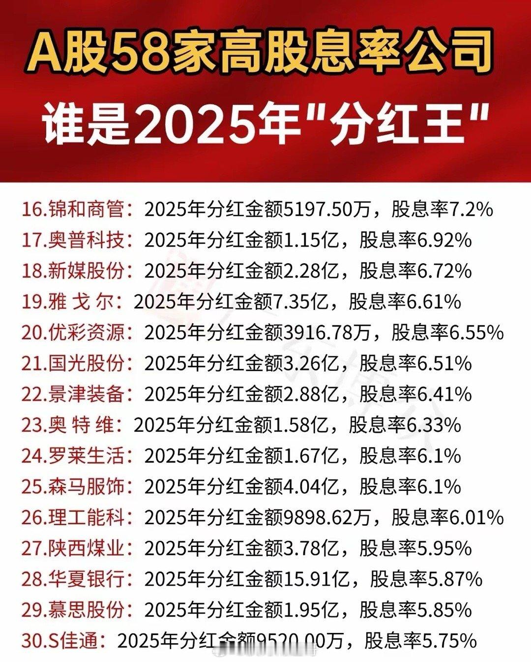“A股58家高股息率公司 谁是2025年‘分红王’”,呈现58家公司2025年分
