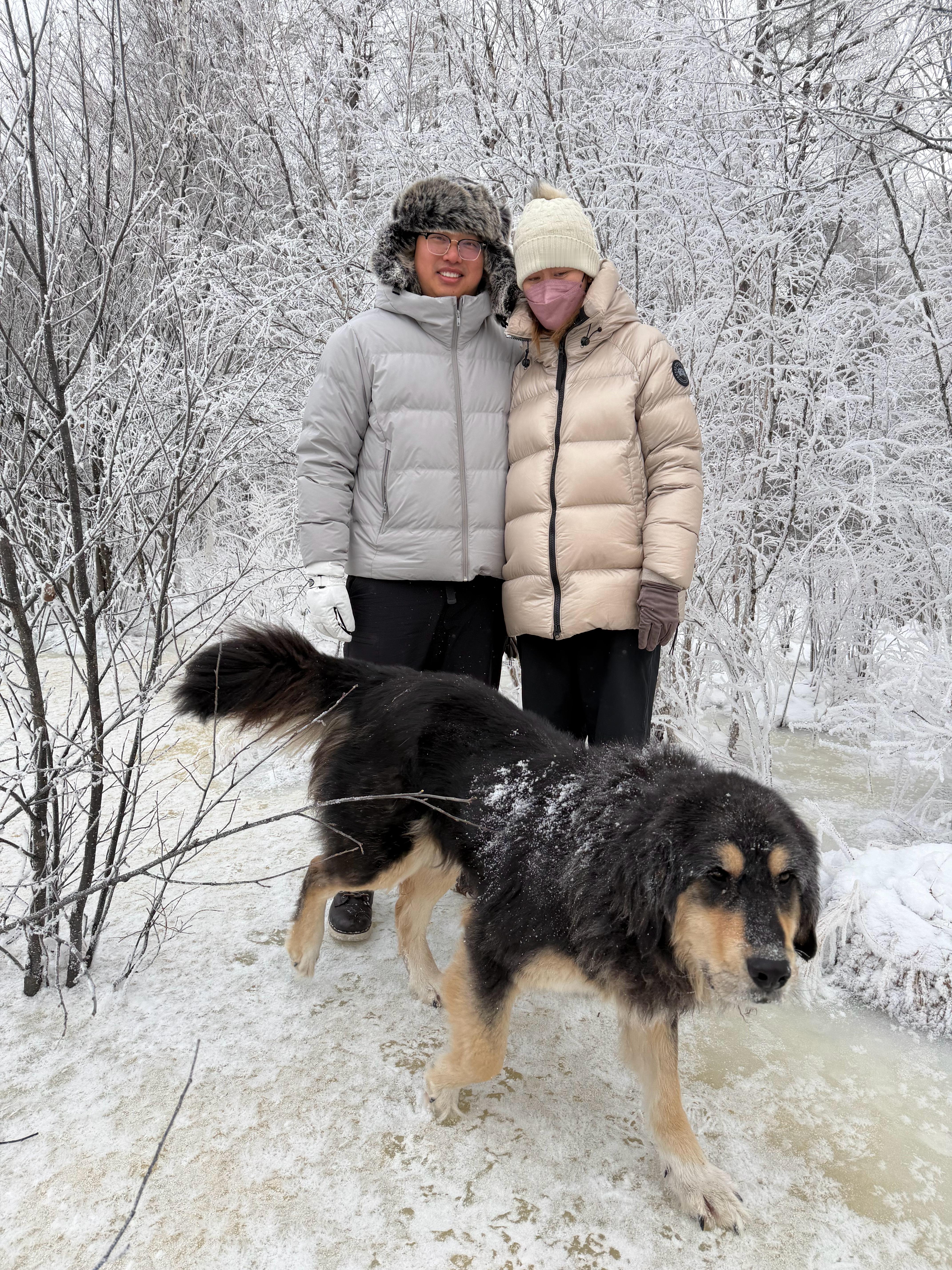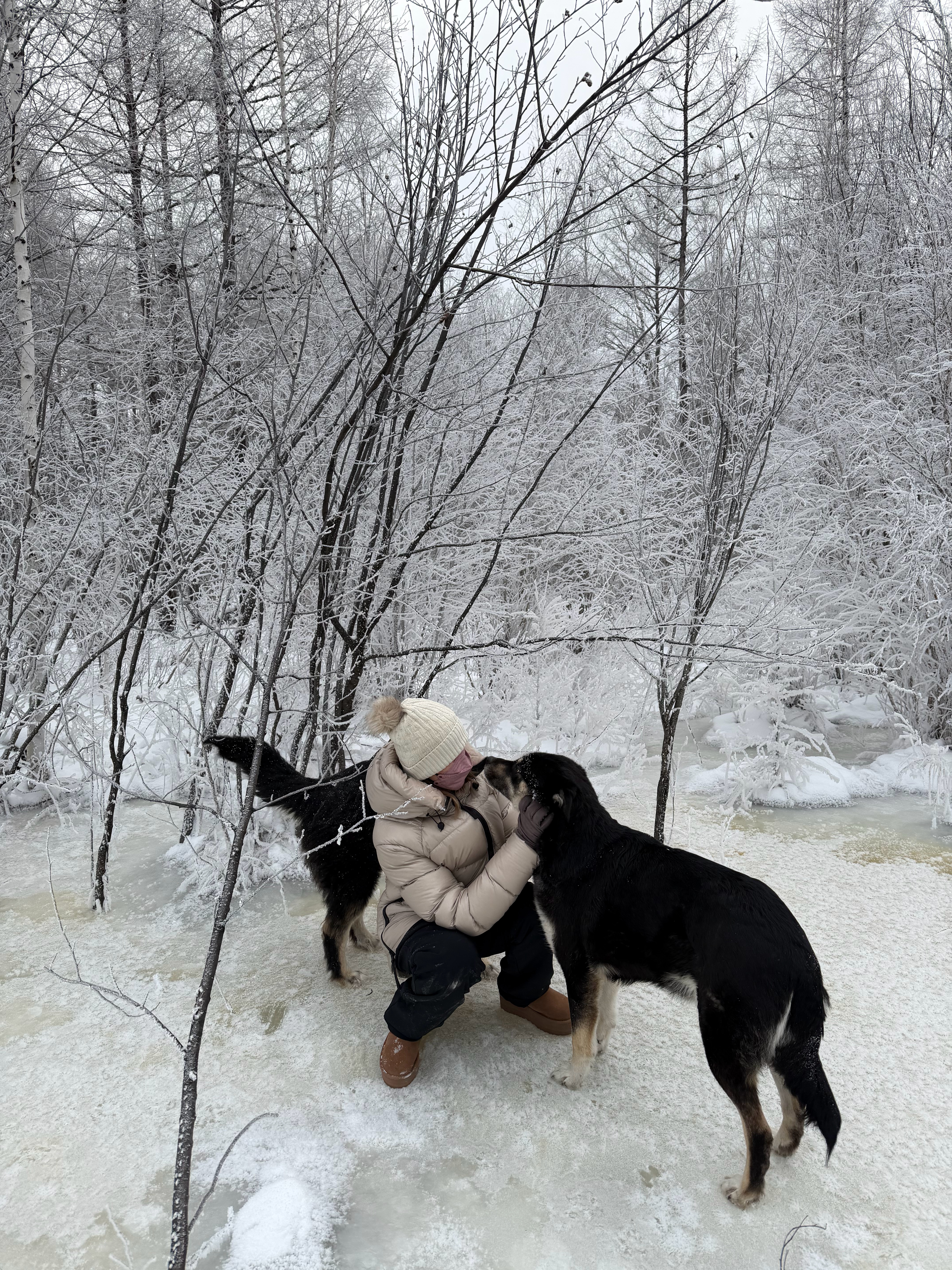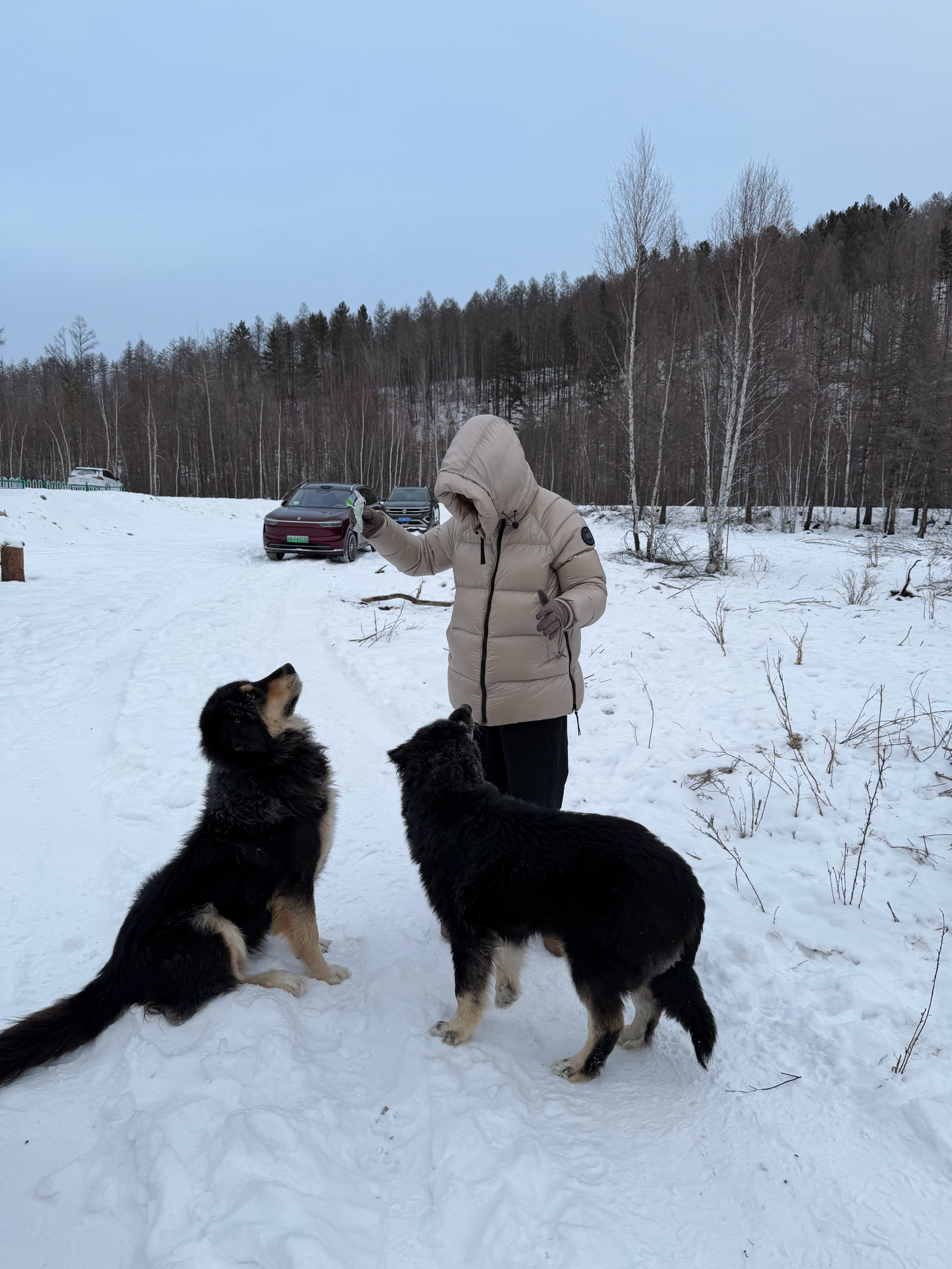 一早上被小动物包围啦,蒙古獒可爱亲人特别乖巧,运气特别好遇到了驯鹿群回家,我还被