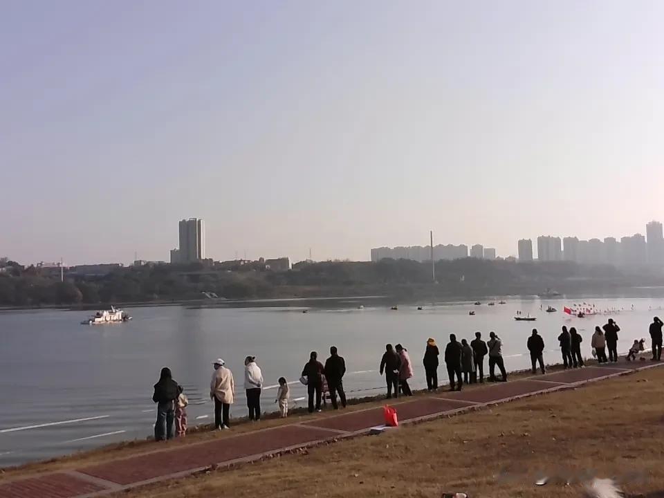 今天是长株潭横渡湘江冬泳活动,现场来了非常多的市民观看和休闲娱乐。还有消防、警察