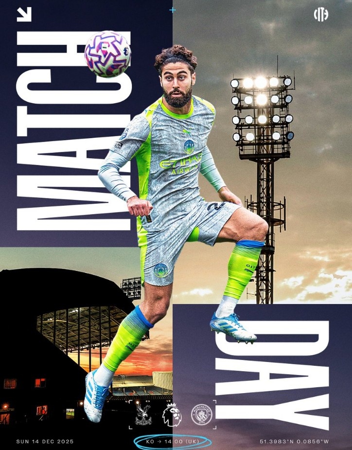 冲击5连胜,曼城官方发布对阵水晶宫海报,格瓦迪奥尔出镜