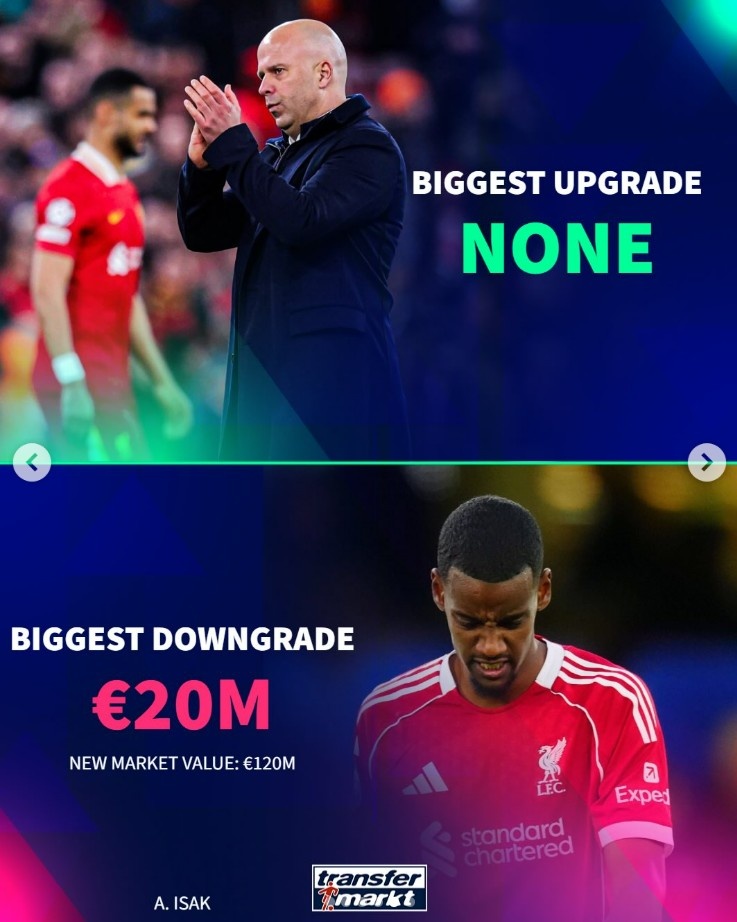 跌幅最大:伊萨克,-2000万欧,1.2亿欧