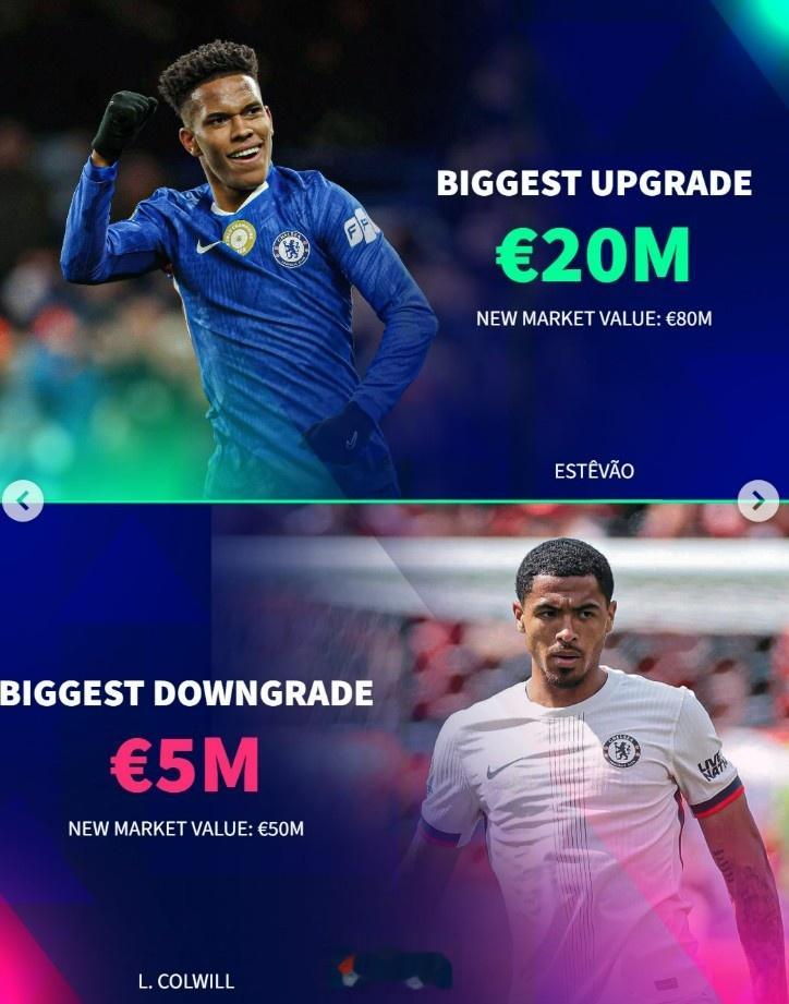 直播吧12月14日讯德转此前更新了英超球员身价,并盘点了Big6队内此次身价涨跌最多的球员,具体如下(涨跌幅以及目前身价):
