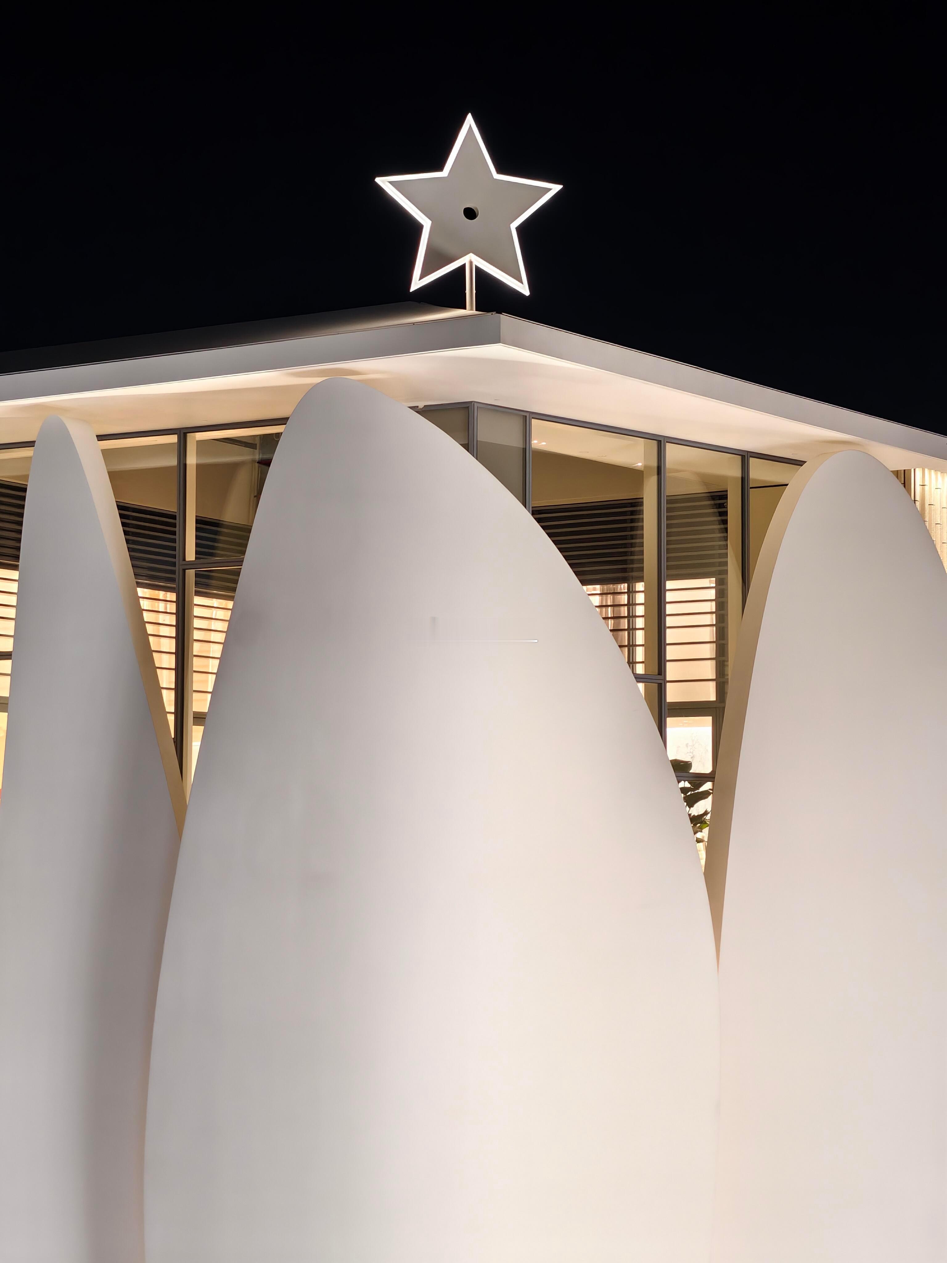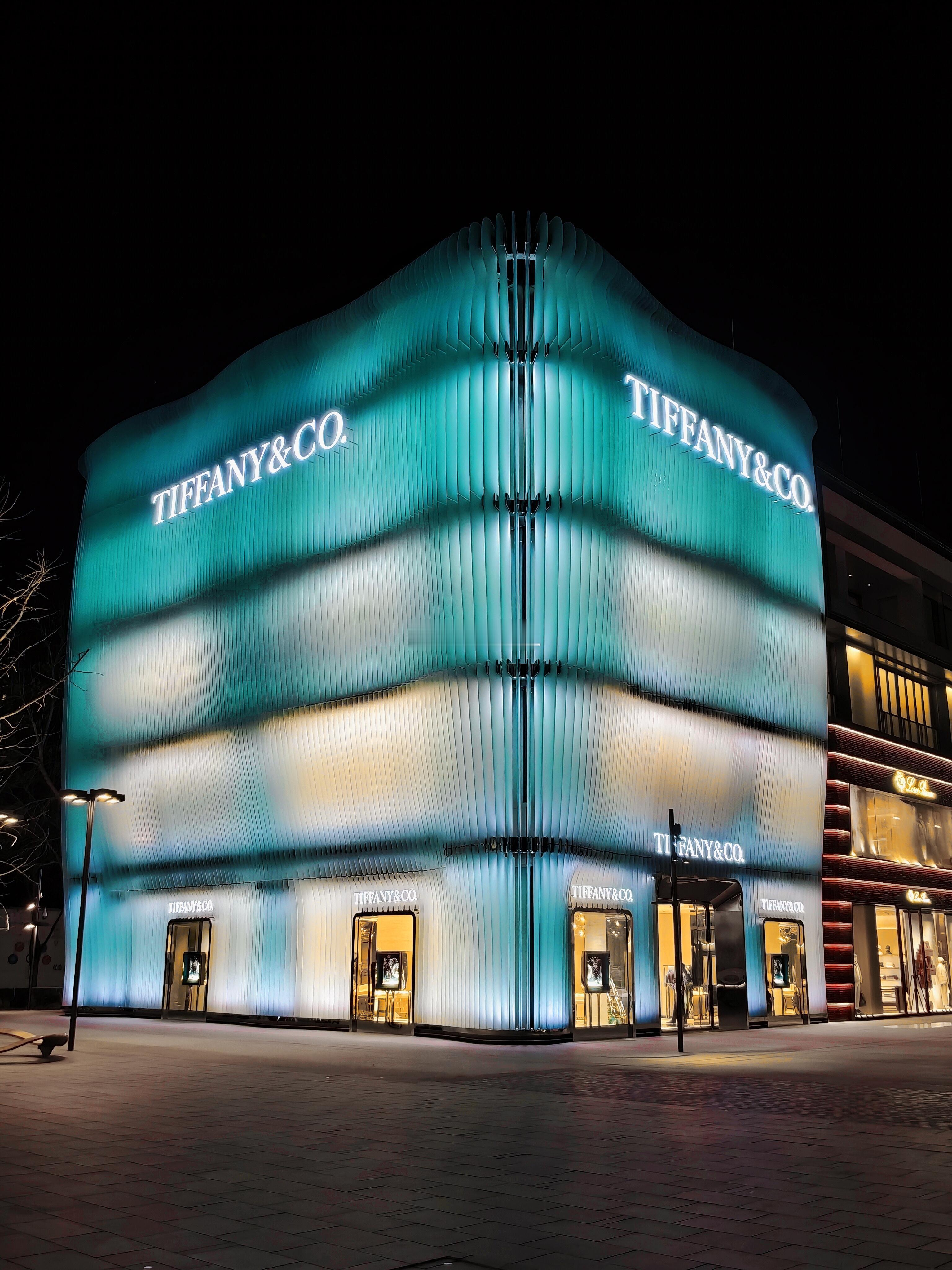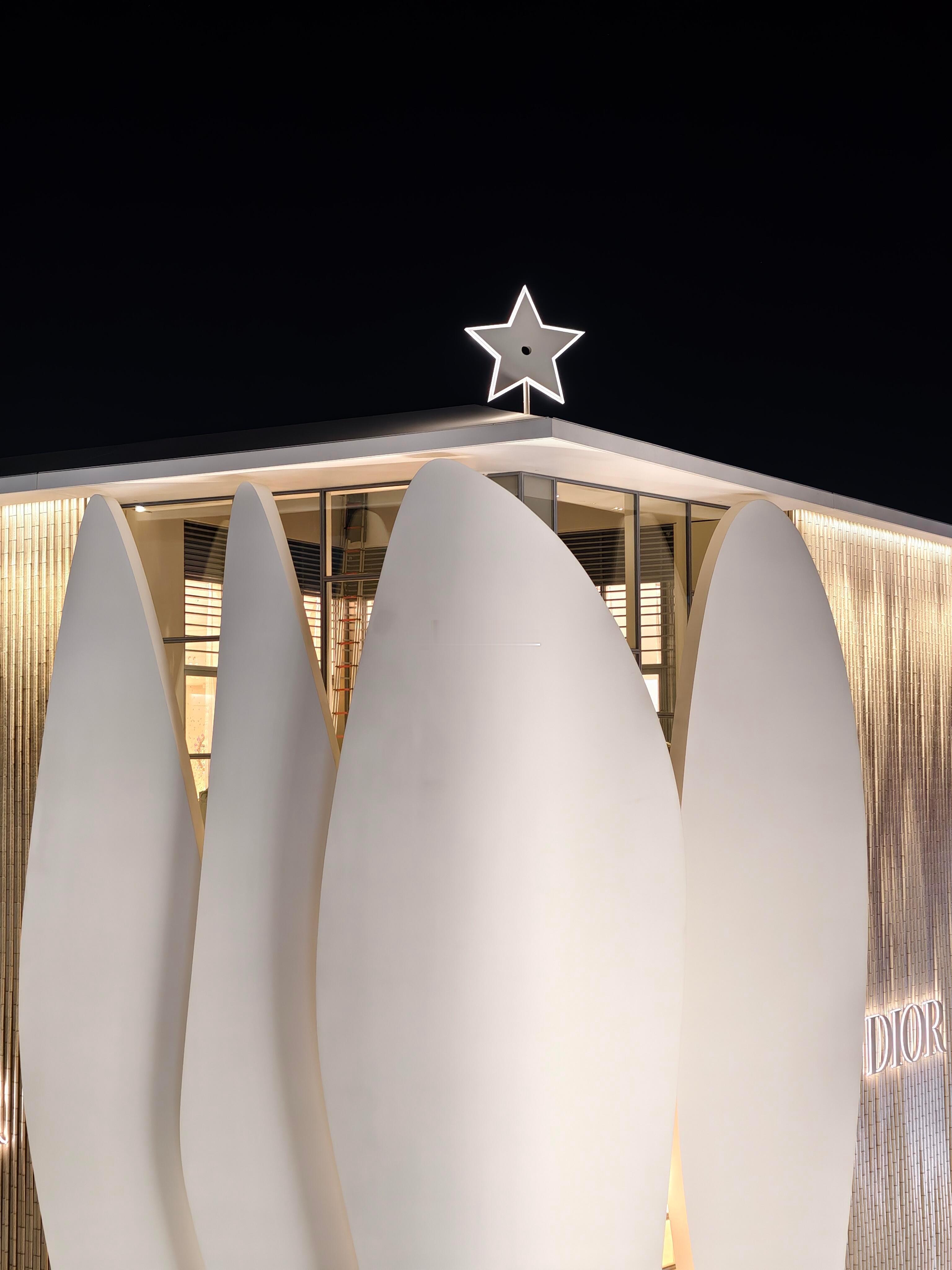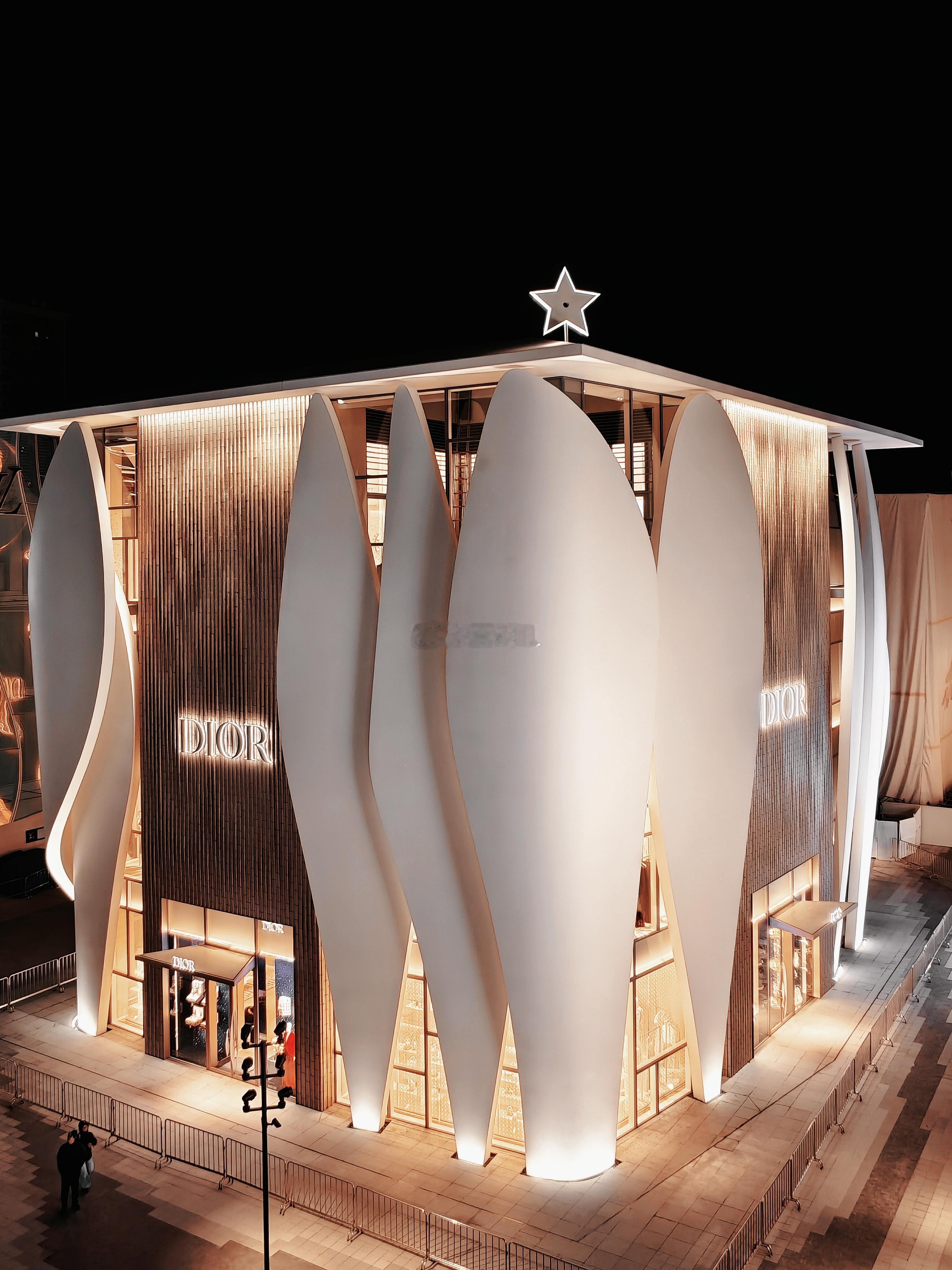 三里屯北区「演绎奢牌美学的终极表达」。五层通高落地窗既展现内部空间,又让建筑在不同光线下呈现丰富层次,兼具沉稳都市感与精致工艺感。时尚