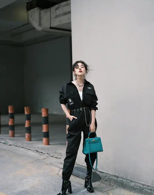别再以为酷飒风就是一身黑了,柳欢欢在音乐节上,用一抹荧光粉,直接撕掉了这个标签。 她这次穿的,还是那件标志性的机车皮衣。 但内搭换成了荧光粉的机能胸衣。 黑色撕裂感短裤下,马丁靴绑带闪着冷光。 舞台激光扫过,那片荧光像一道撕裂夜空的信号。 这就是升级版的酷飒逻辑:用**基础黑色稳住骨架**,用**高亮色块点燃视觉**。 硬朗的皮革和未来感的荧光,冲突感直接拉满。 日常里你只需记住一个公式:7分基础款+ 2分个性色+ 1分机能元素。 时尚博主们追着夸,不是夸衣服,是夸她这套“**反差定锚法**”。 人的视觉本能会被矛盾点钉住。 一片暗黑里,那一点荧光,就成了所有目光的锚点。 真正的酷,从不是藏在安全的黑色里。 是当所有人都选择融入时,你敢用一线锋芒,推开人群。 不是潮流在变,是你开始用衣服书写宣言。