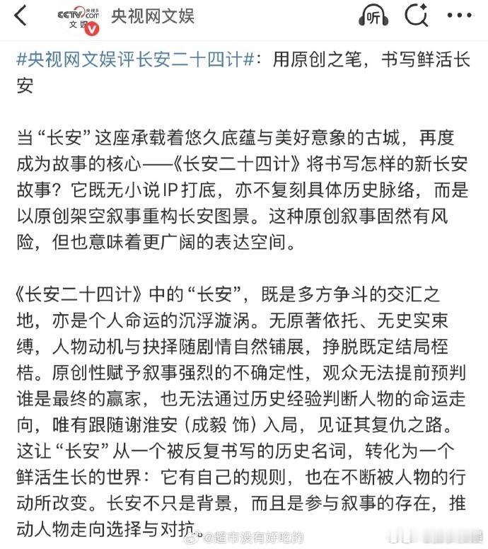 央视网文娱评长安二十四计长安二十四计长安的鲜活感要溢出屏幕!多方势力拉扯、个人命运沉浮,每个角色的选择都牵动全局,上👖追根本停不下来!