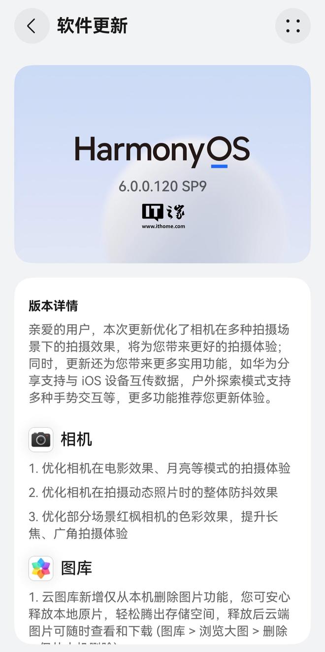 据介绍,本次更新优化了相机在多种拍摄场景下的拍摄效果、带来了华为分享支持与iOS设备互传数据、户外探索模式支持多种手势交互等实用功能。