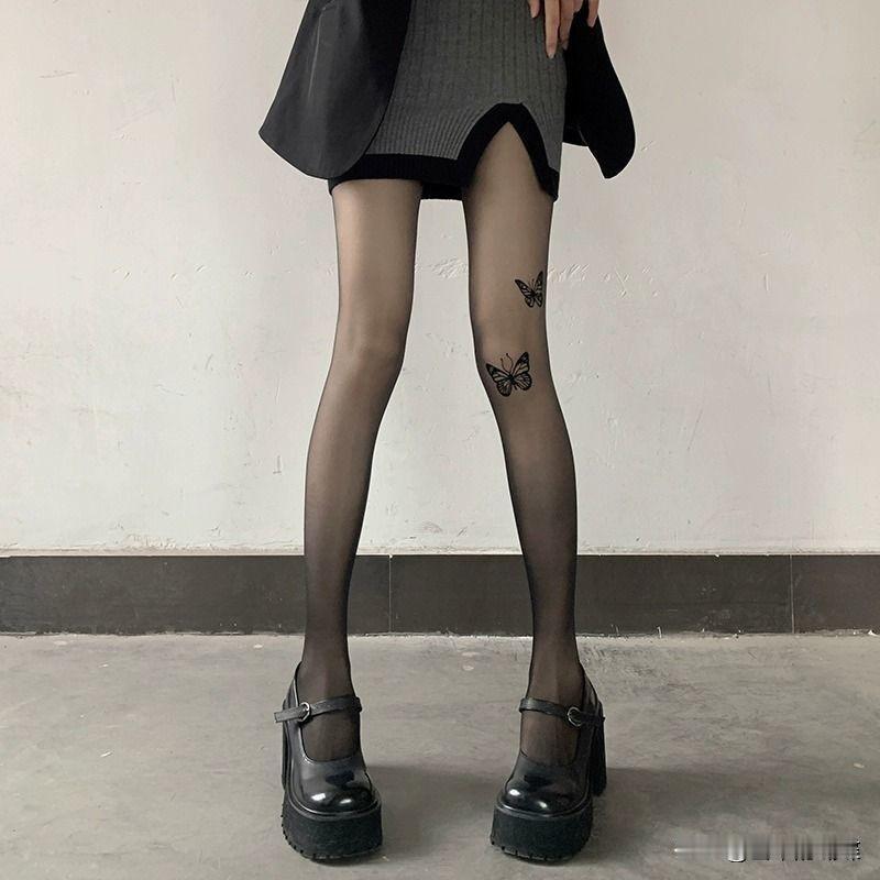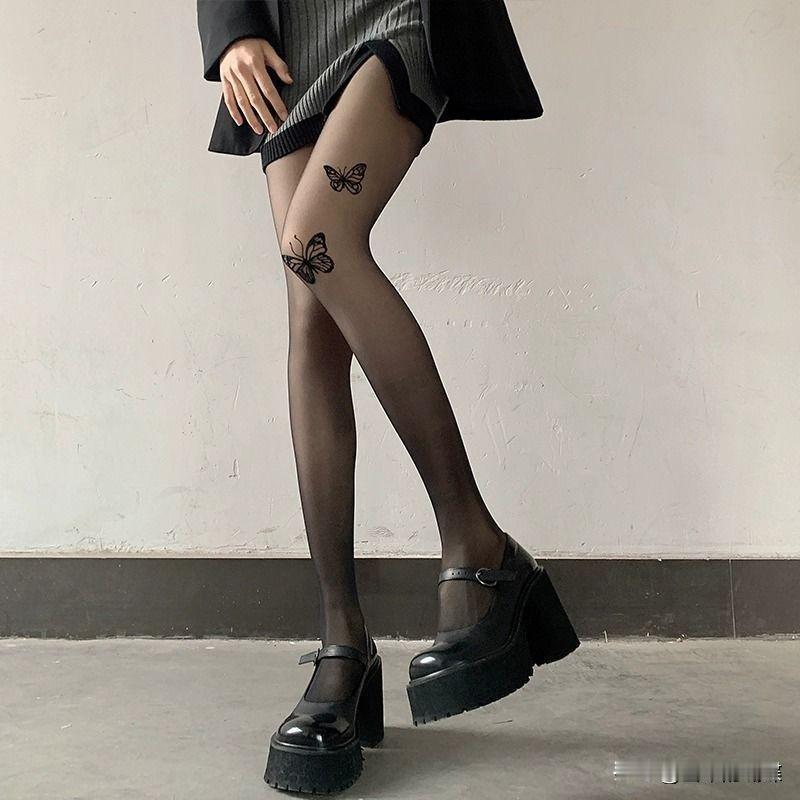 时尚蝴蝶纹身,黑丝袜与高跟鞋的完美搭配,尽显优雅与个性!