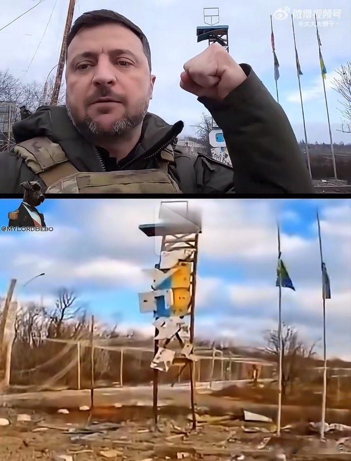 泽连斯基视察库皮扬斯克视频,被指系数月前拍摄。在俄方无人机拍摄的画面中,显而易见,现在的标志牌破损的更严重……