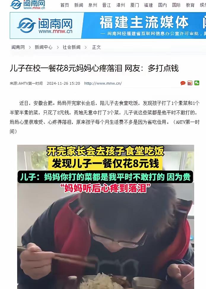 多好的孩子,不过长身体的时候还是让孩子多吃点吧,不要总想着省钱,我女儿高中每天加宵夜要吃70多[泪奔],还每周要买一两百的零食带回去,从不想着省钱,从80多斤吃到了110多斤了,我真怕她吃成大肥婆[泪奔]
