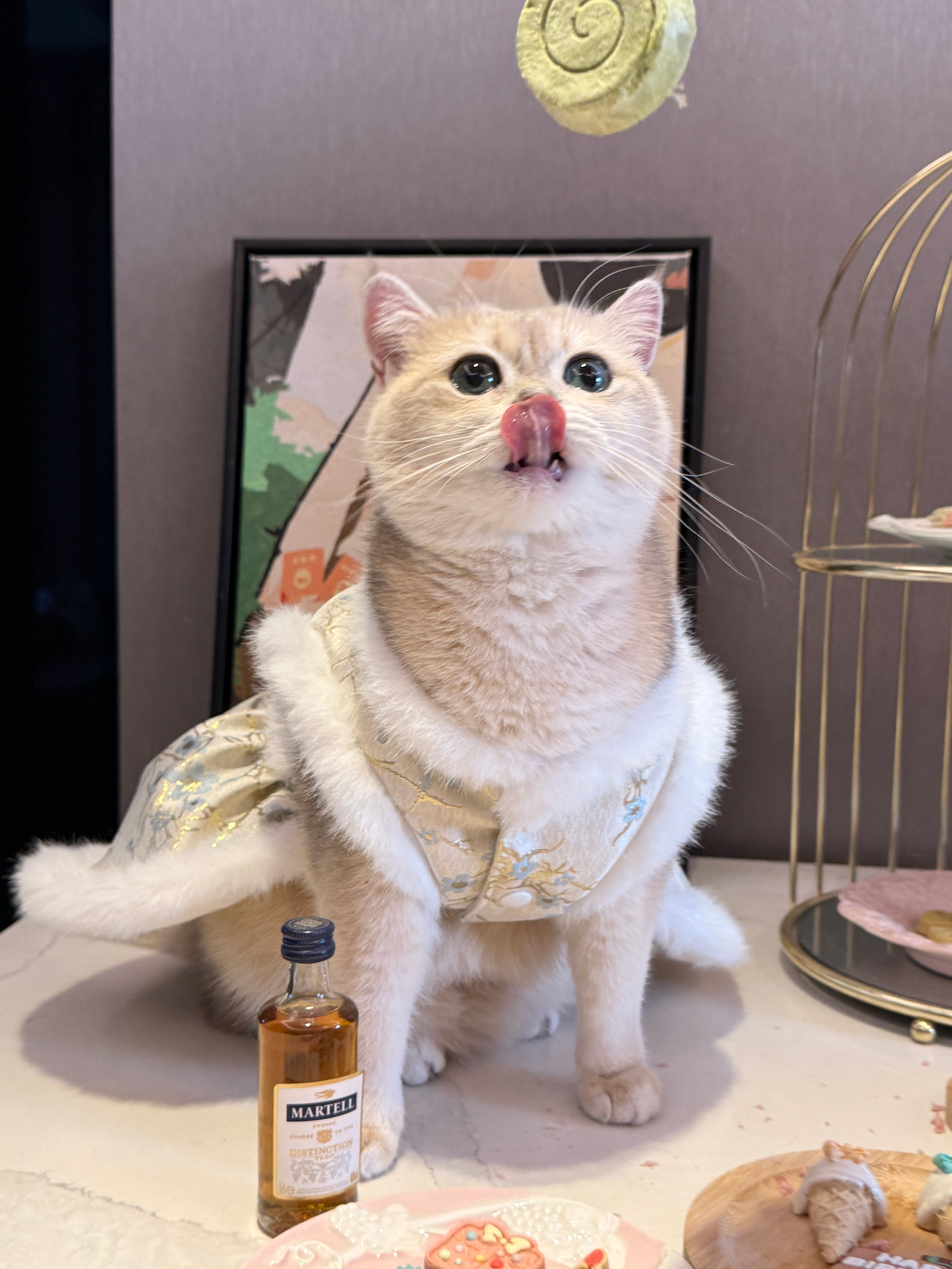 恭喜这位小朋友两岁啦🎂🎉酒酒的豪华下午茶:马爹利配汉堡 有酒😎有肉🥩日常吸猫宠物日常我的日常plogROROO肉肉