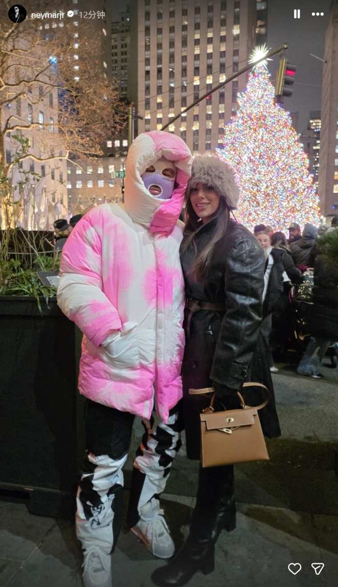 直播吧12月14日讯内马尔社媒此前晒出与女友出游的合影,球员身穿粉白色外套,头戴面罩漫步纽约。内马尔的女友布鲁娜·比安卡迪还晒出两人在时代广场乘坐圣诞花车的视频。