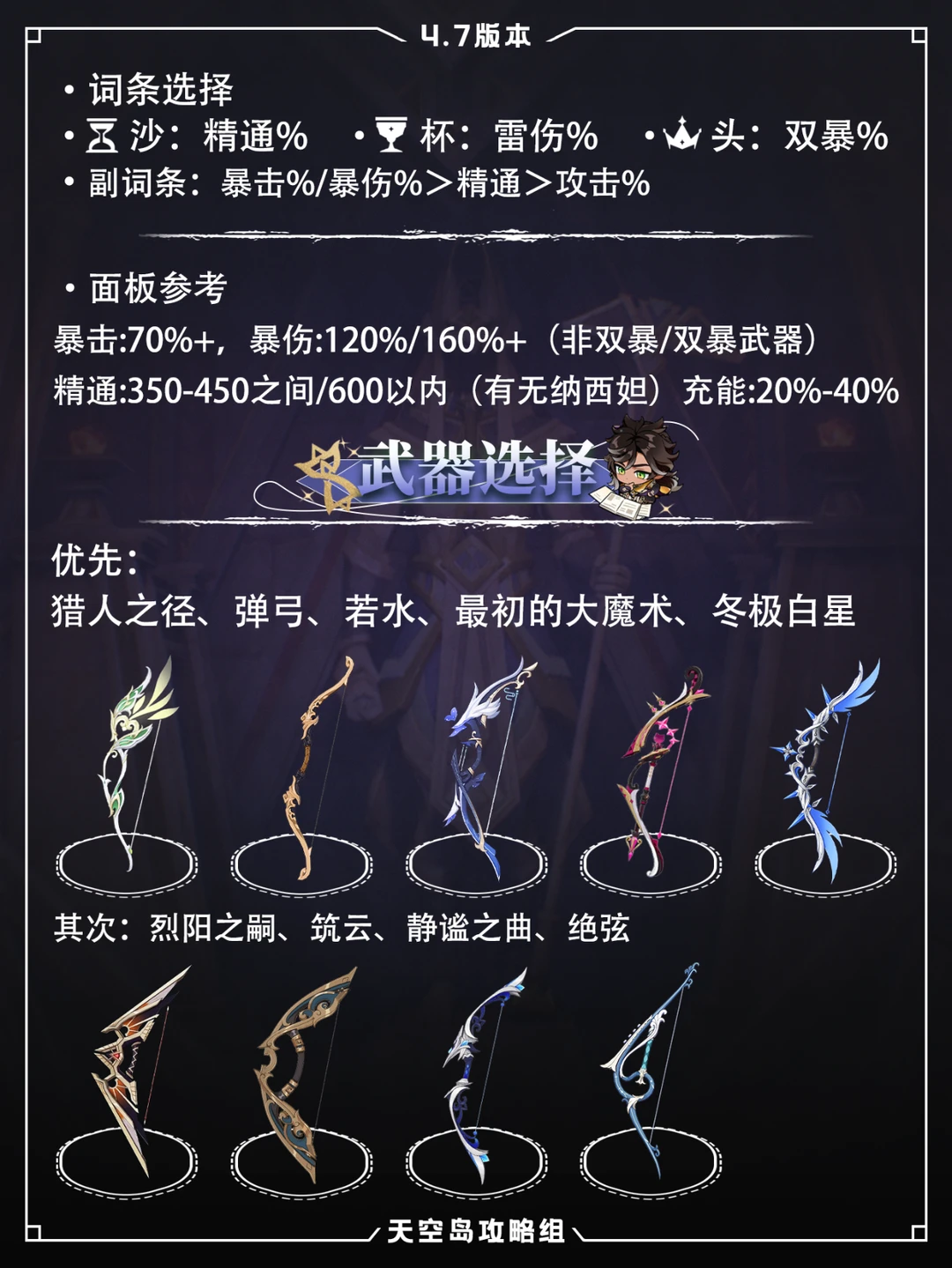 圣遗物优先:精通沙、雷伤杯、双暴头