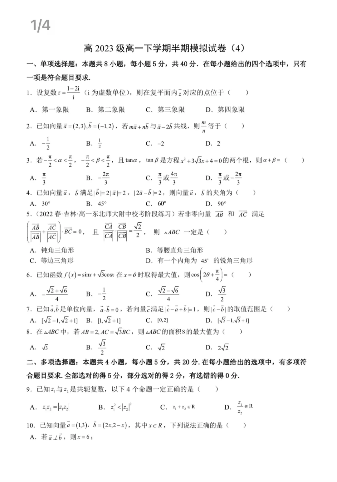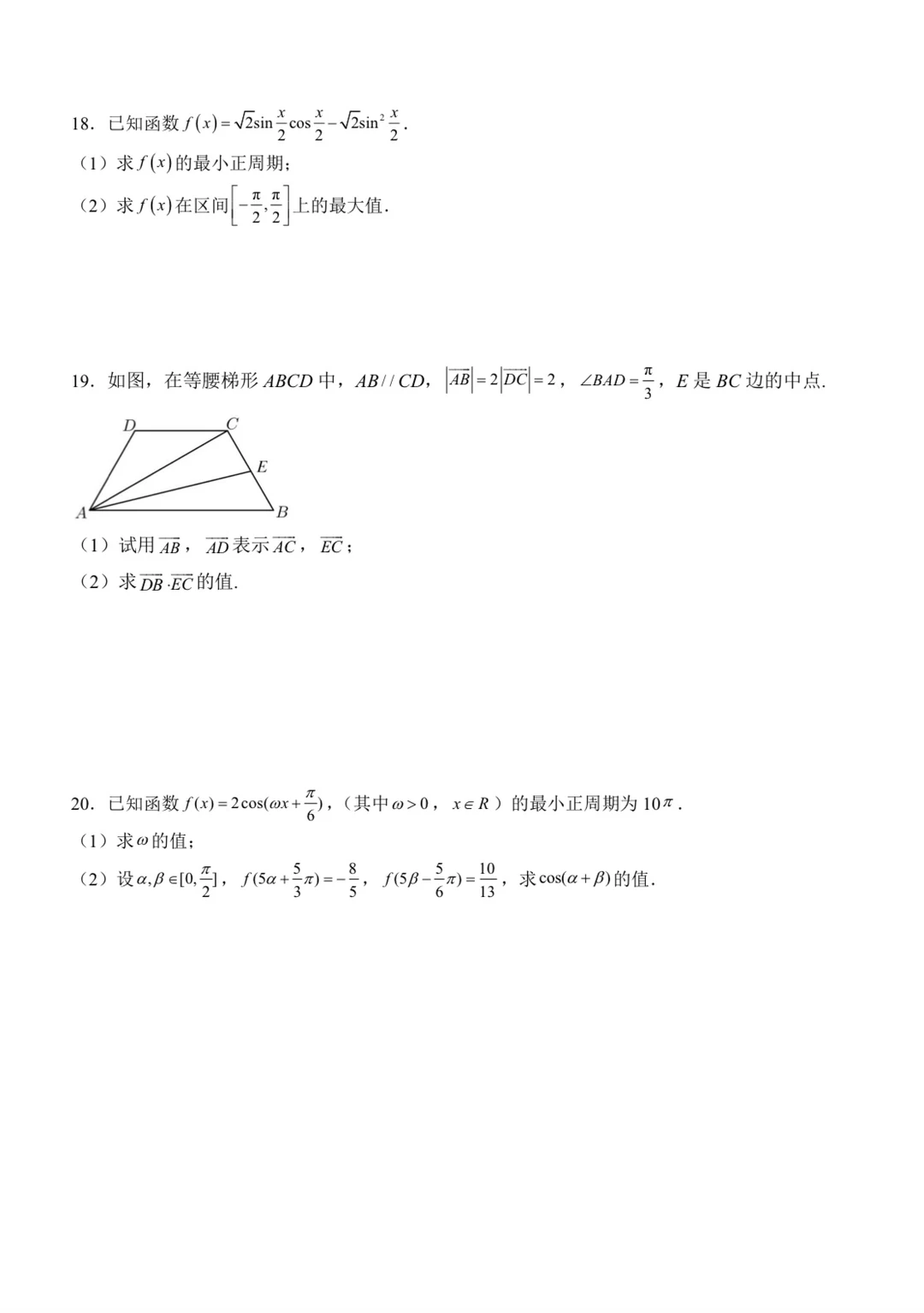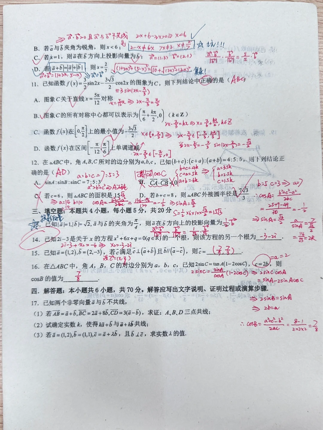 半期考前最后一套卷子,大题比较基础,填选暴露了学生太多问题,值得做和讲。三角函数、平面向量、解三角形、复数的痛点问题必须再给学生讲解到位。 接下去两篇笔记教案和板书就是针对这个卷子展开。