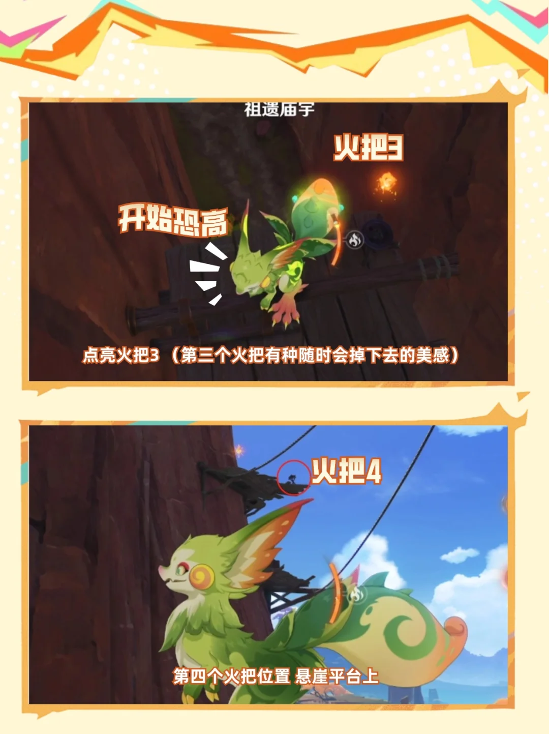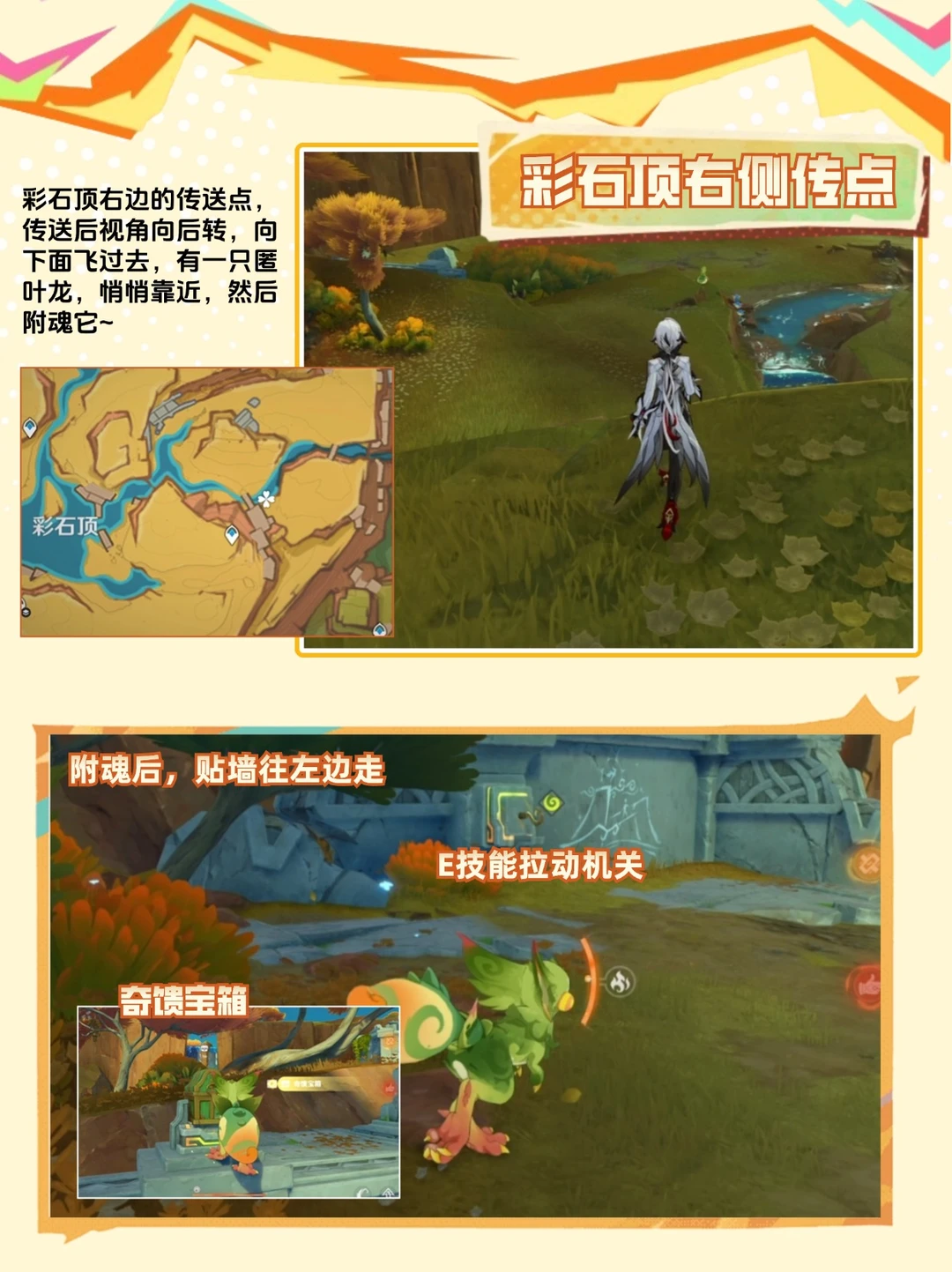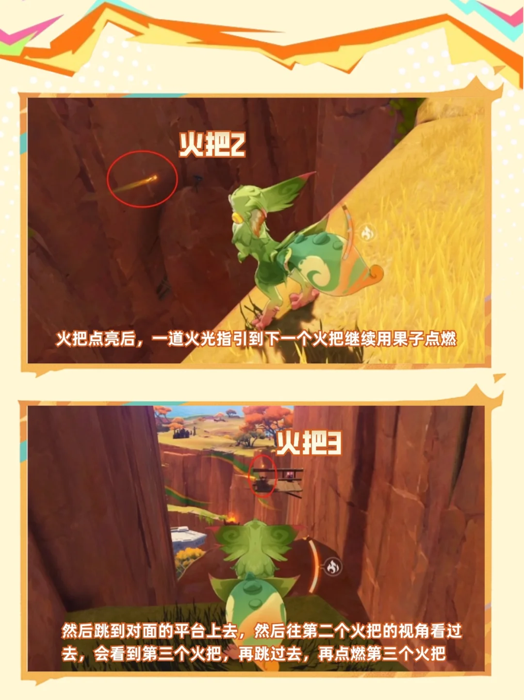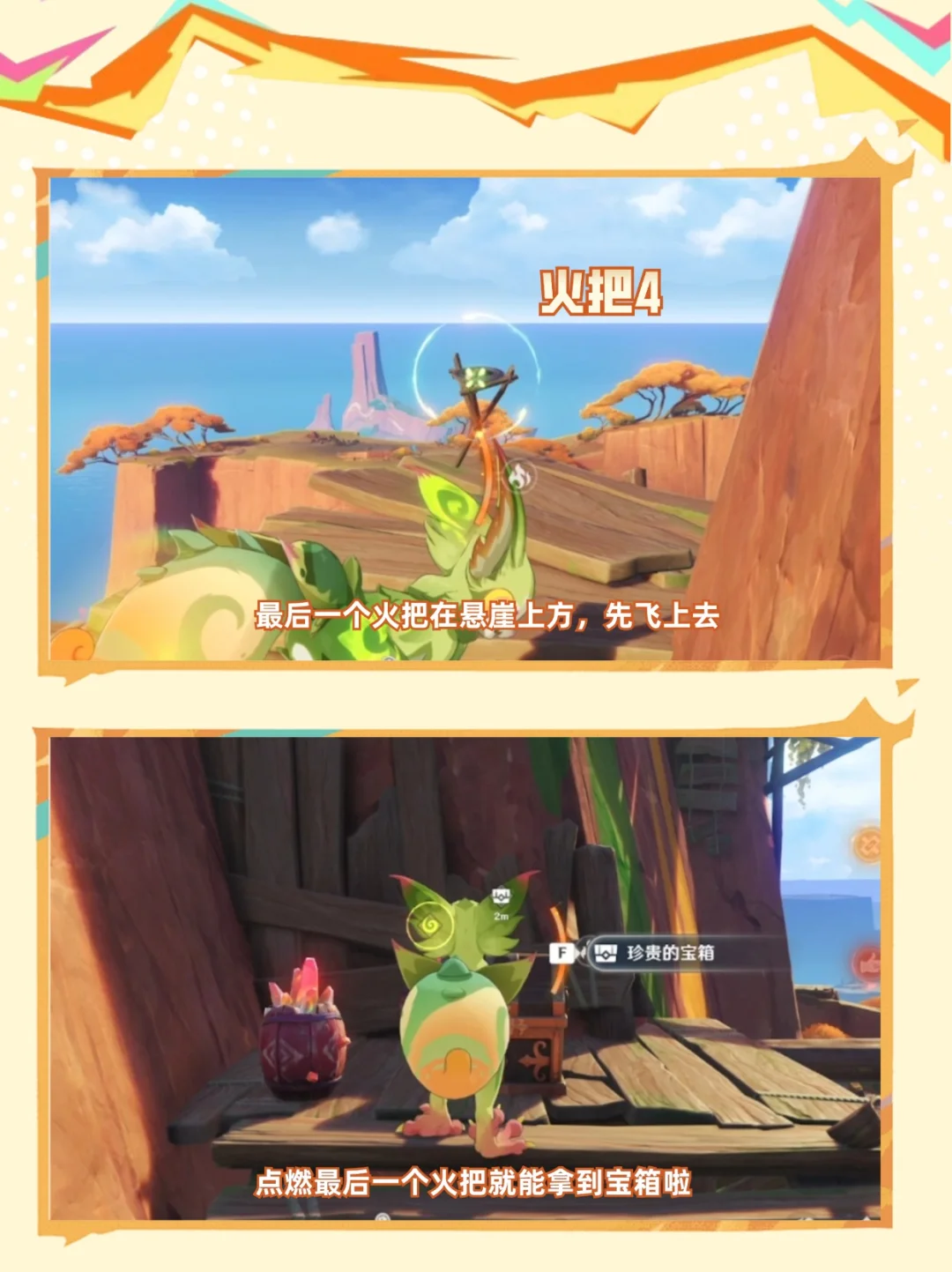 纳塔隐藏宝箱采一采 点亮4火把,珍贵宝箱到手 ⭐需要传送到彩石顶右侧传送点,具体位置可见p2 一定要魂附匿叶龙或者使用基尼奇哦[皱眉R]