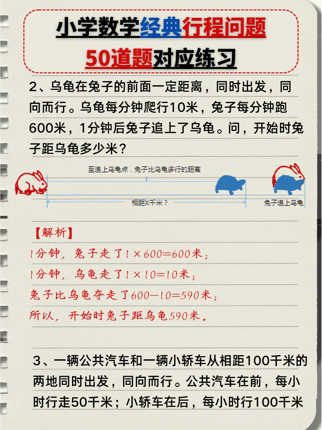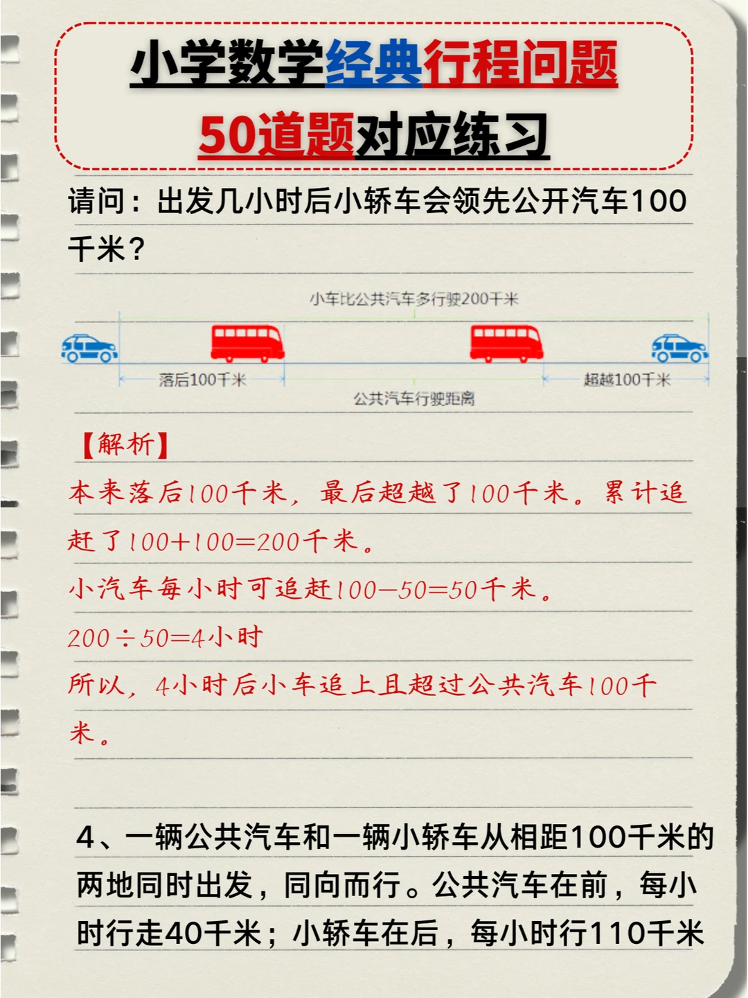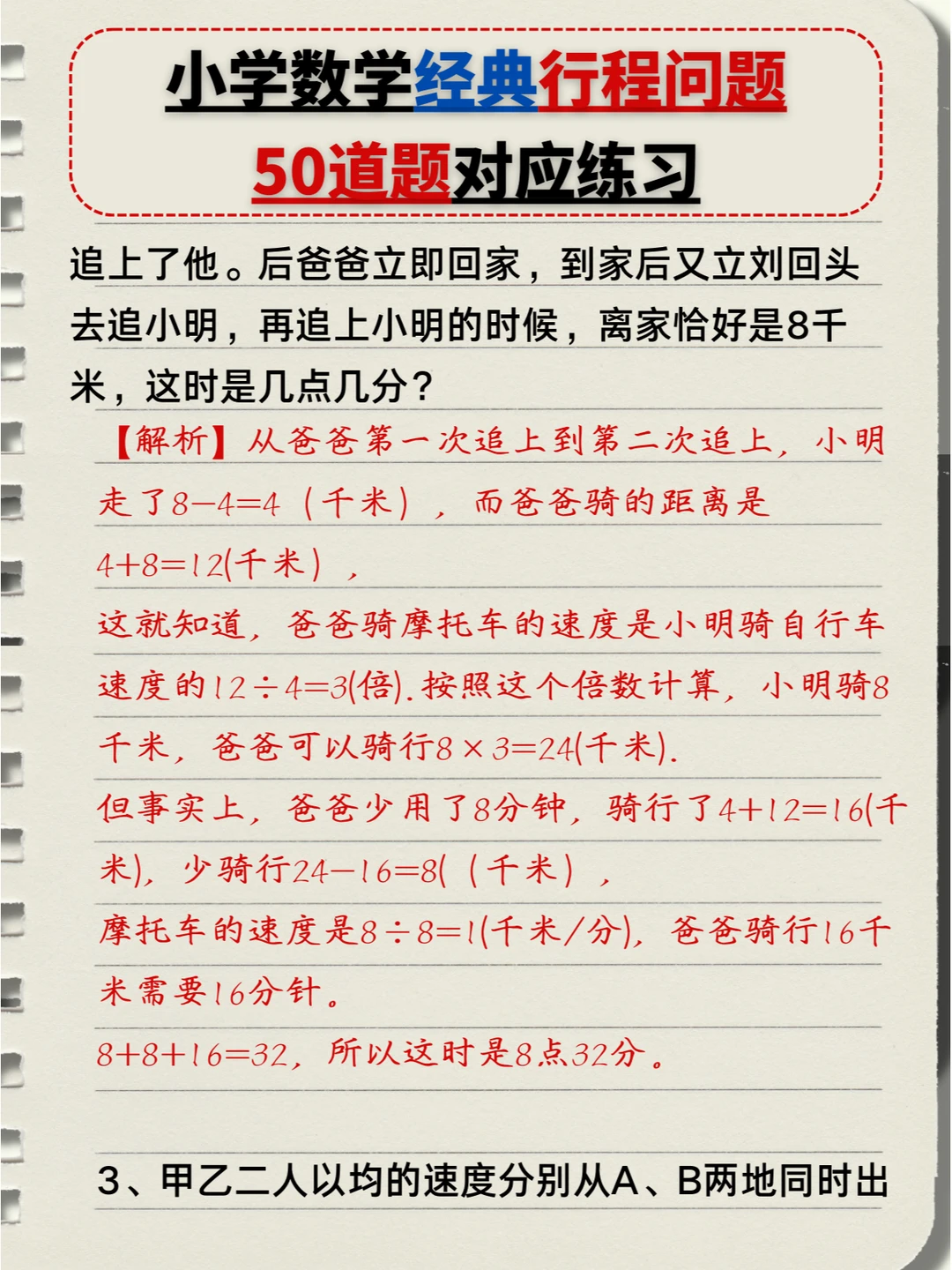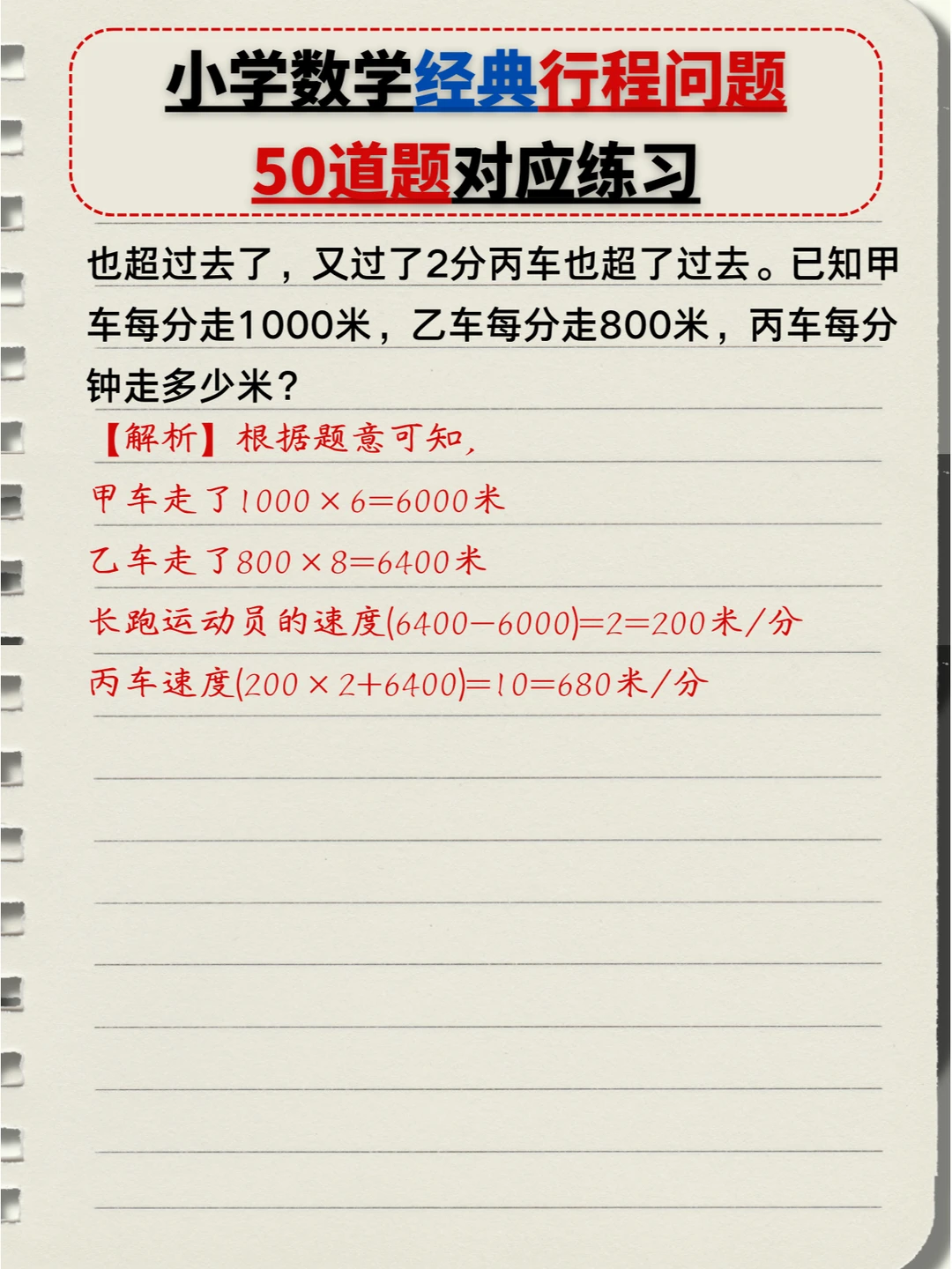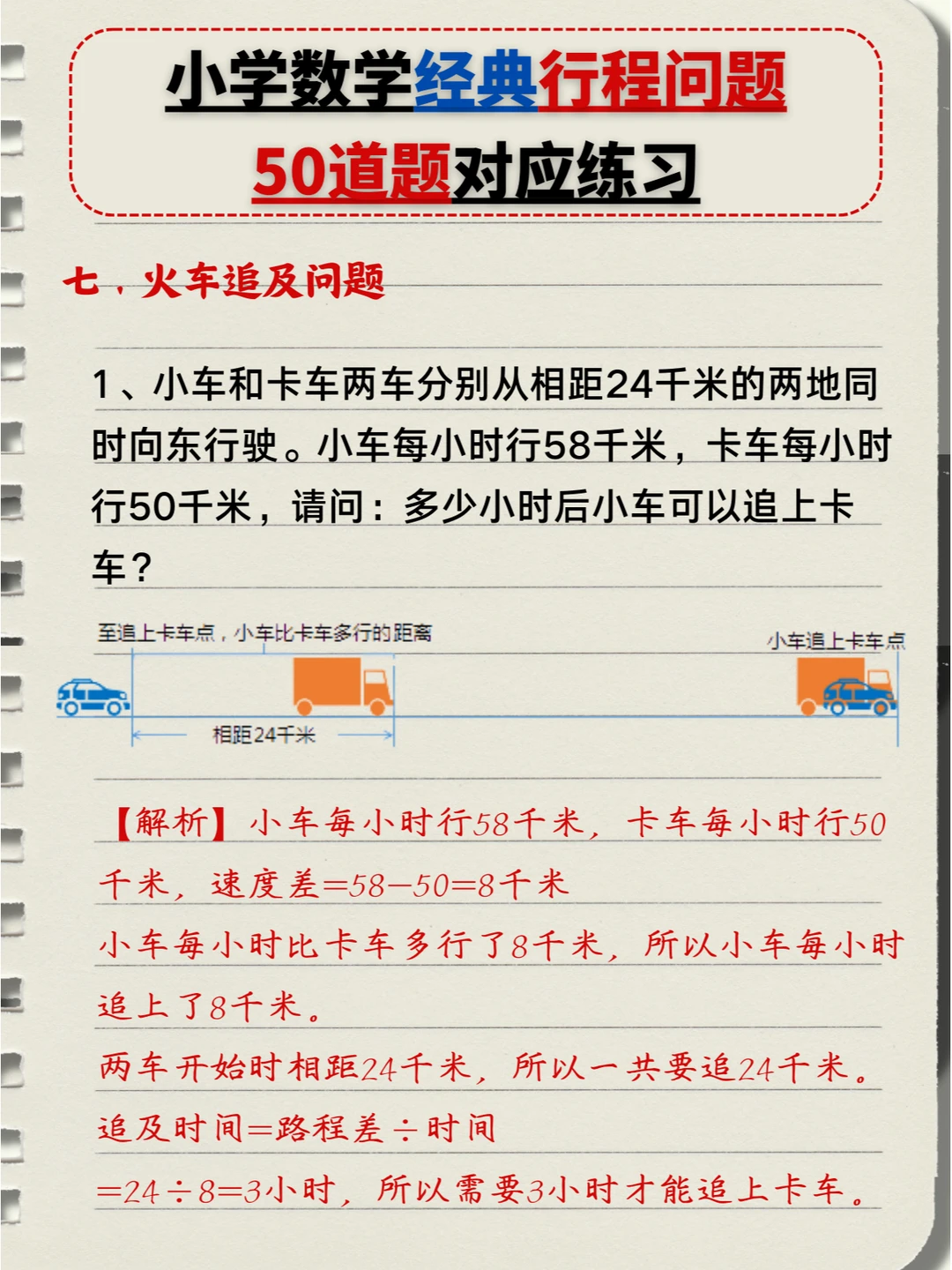 🔥小学数学:经典行程问题🔟类题型,5️⃣0️⃣道题对应练习题+答案💯(中) 👉本次对应题型练习: 4️⃣、多人相遇追及问题 5️⃣、多次相遇追及问题 6️⃣、火车过桥问题 7️⃣、火车追及问题 👉上次对应题型练习: 1️⃣、简单相遇及追及问题 2️⃣、流水行船问题 3️⃣、环形跑道问题