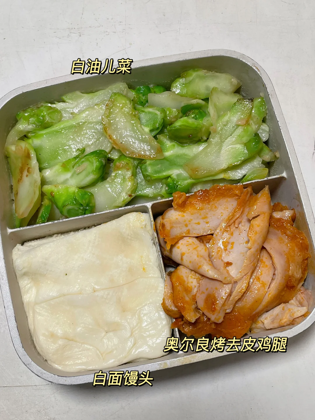 📍馒头+白油儿菜+奥尔良去皮鸡腿