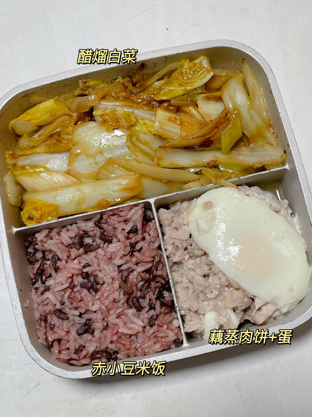 📍赤小豆米饭+醋熘白菜+藕蒸肉蒸蛋