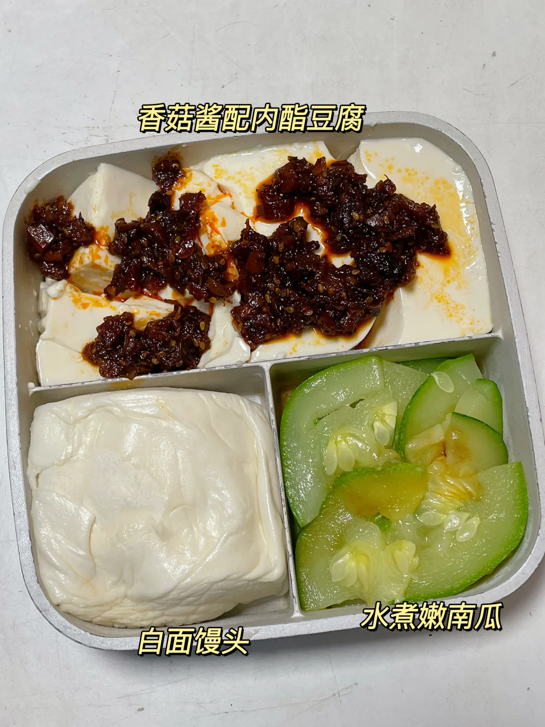 📍馒头+水煮嫩南瓜+香菇酱配内酯豆腐