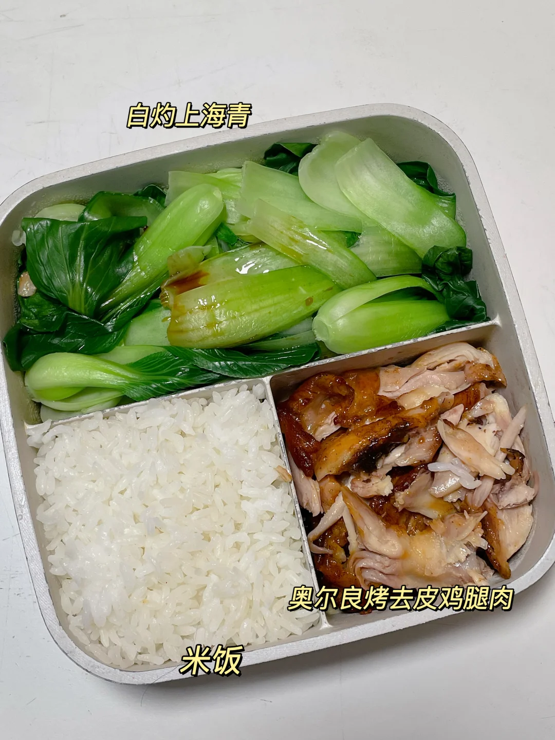 📍米饭+白灼上海青+奥尔良去皮鸡腿