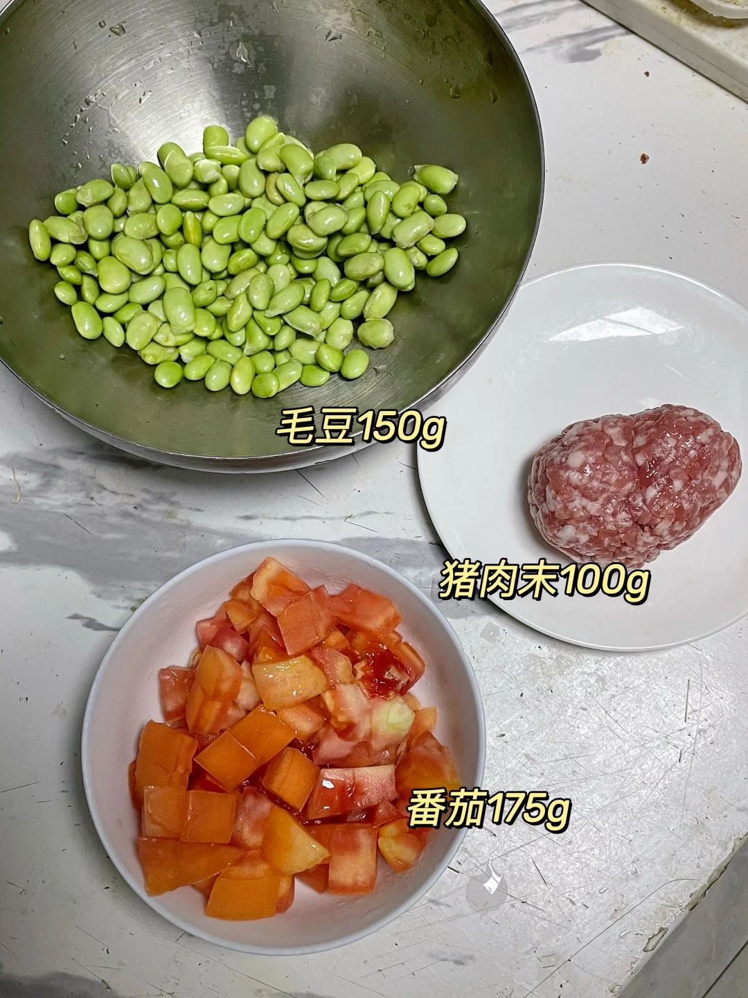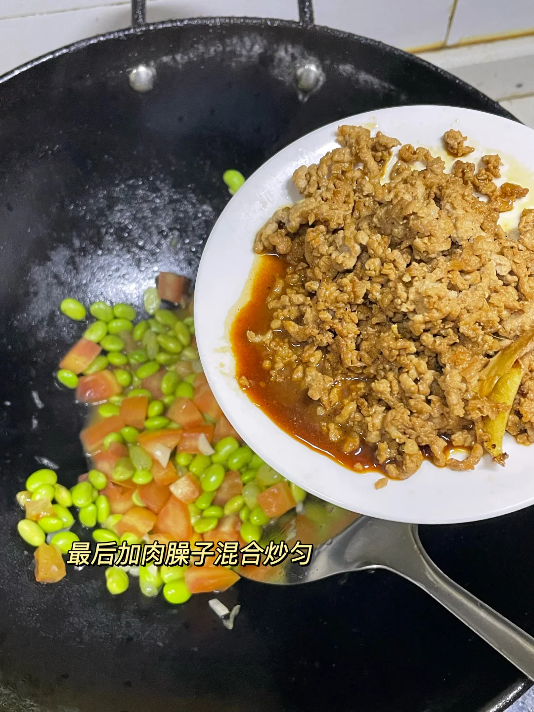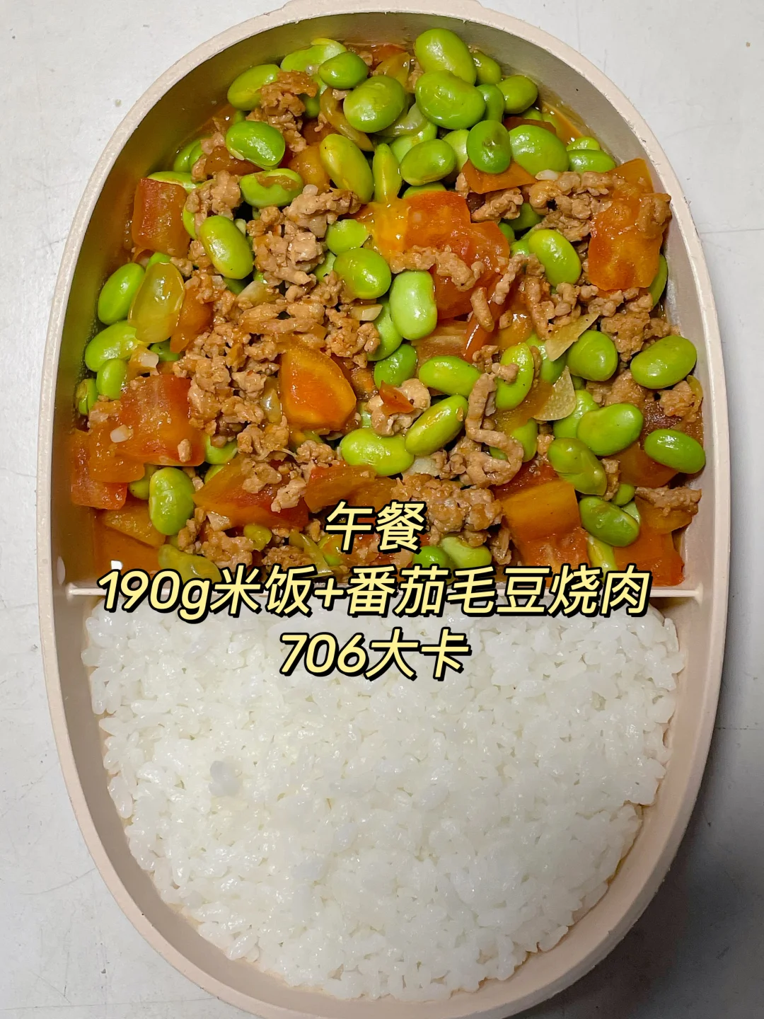 午 米饭+番茄肉末炖毛豆