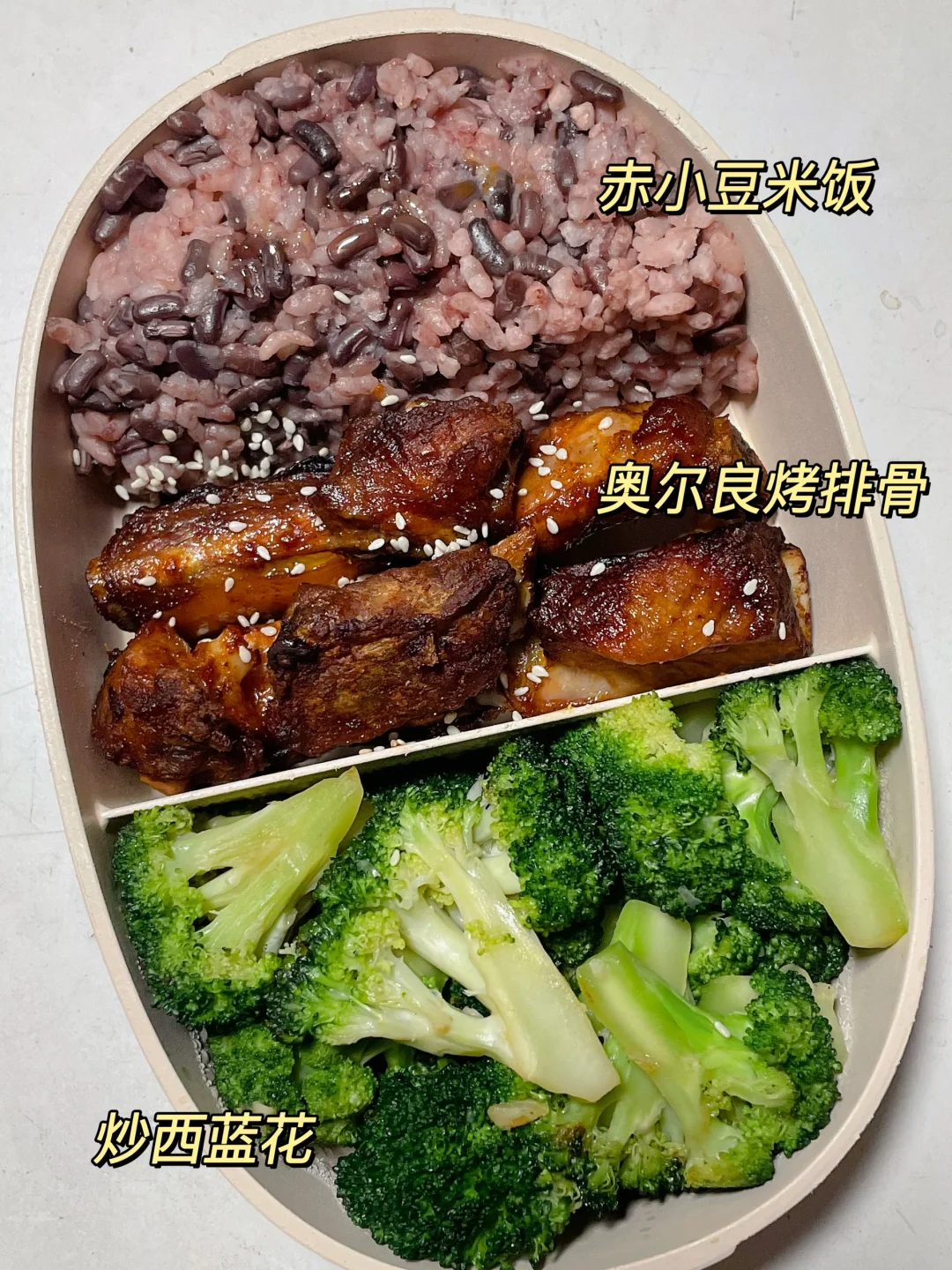 📍赤小豆米饭+烤排骨+炒西蓝花