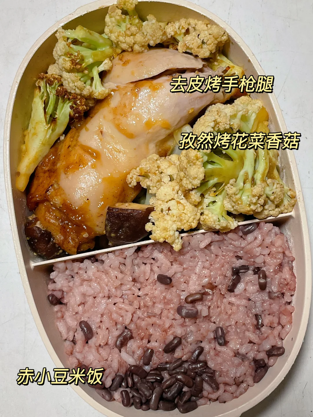📍赤小豆米饭+烤手枪腿+烤花菜香菇