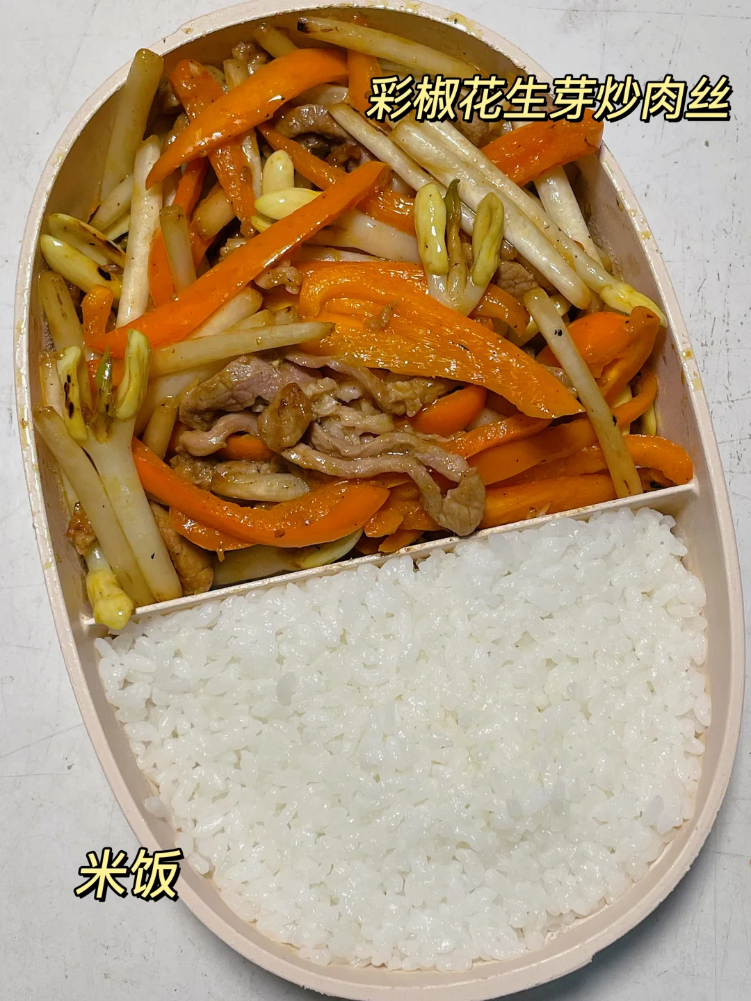 📍米饭+彩椒花生芽炒肉丝