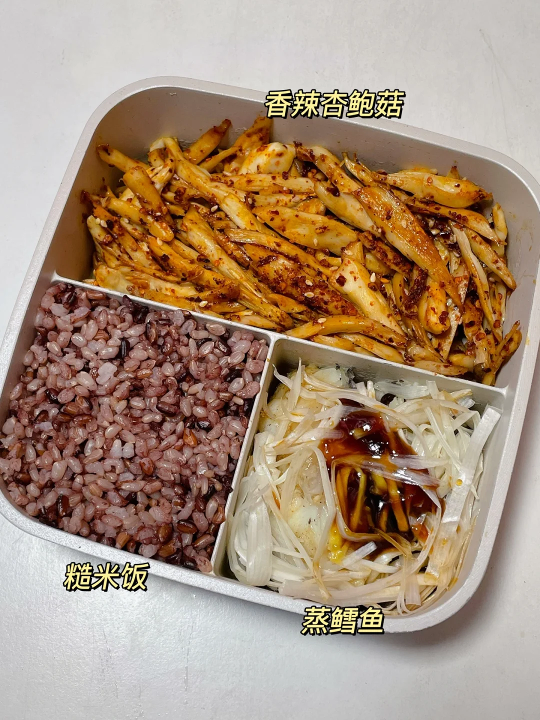 📍糙米饭+蒸鳕鱼+香辣杏鲍菇