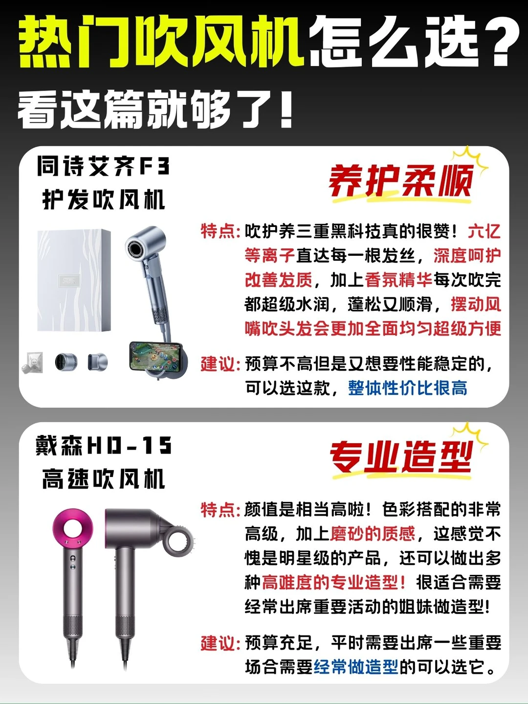 🔍于是,我亲测了12款吹风机,从大牌到小众,从中低端到高端,就为了找到一个能让我们告别干枯毛躁的“真爱”。