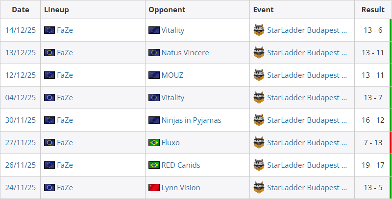 至此,FaZe在本届Major上总计出战八次,取得7胜1负。其中,两次击败Vitality(13-7和13-6),仅在第一阶段时以7-13输给过巴西战队Fluxo。