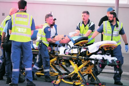 12月14日,在澳大利亚悉尼枪击事件现场,应急人员运送伤员。新华社发