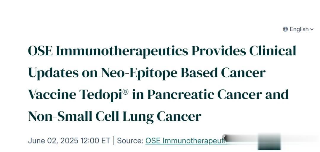 在2025年ASCO大会上,一款现货型肿瘤新抗原肿瘤疫苗OSE2101(Tedopi)治疗晚期或转移性胰腺导管腺癌(PDAC)的2期临床研究结果公布。