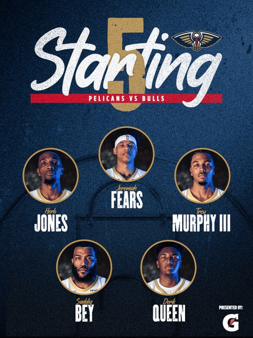 鹈鹕首发:费尔斯、墨菲三世、赫伯特-琼斯、奎因、贝
